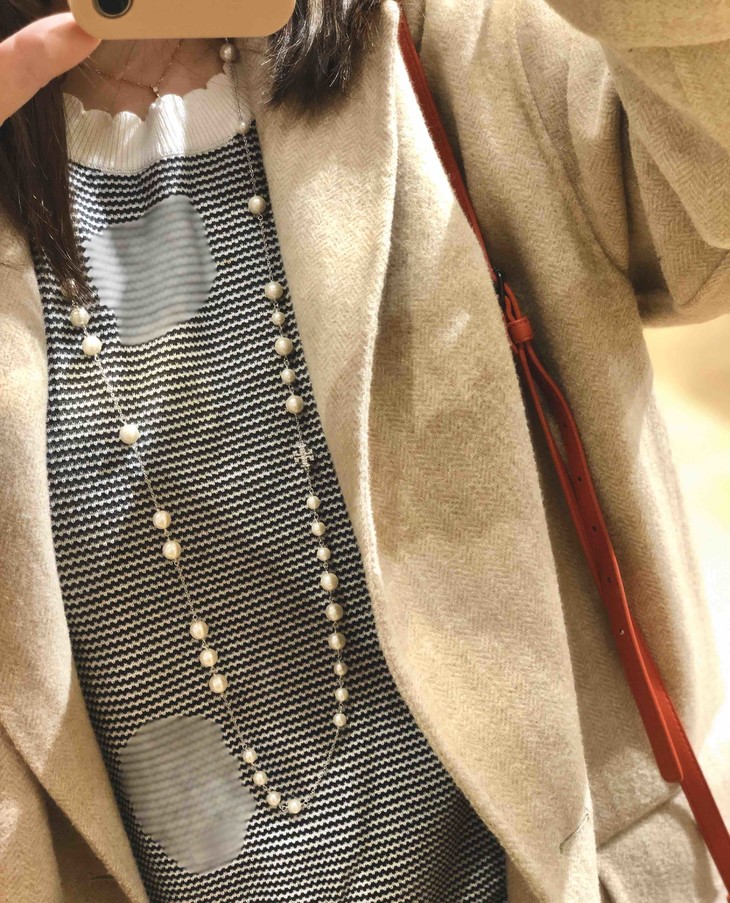 TB这条珍珠项链非常美!毛衣链长度,也可以两圈做短项链!