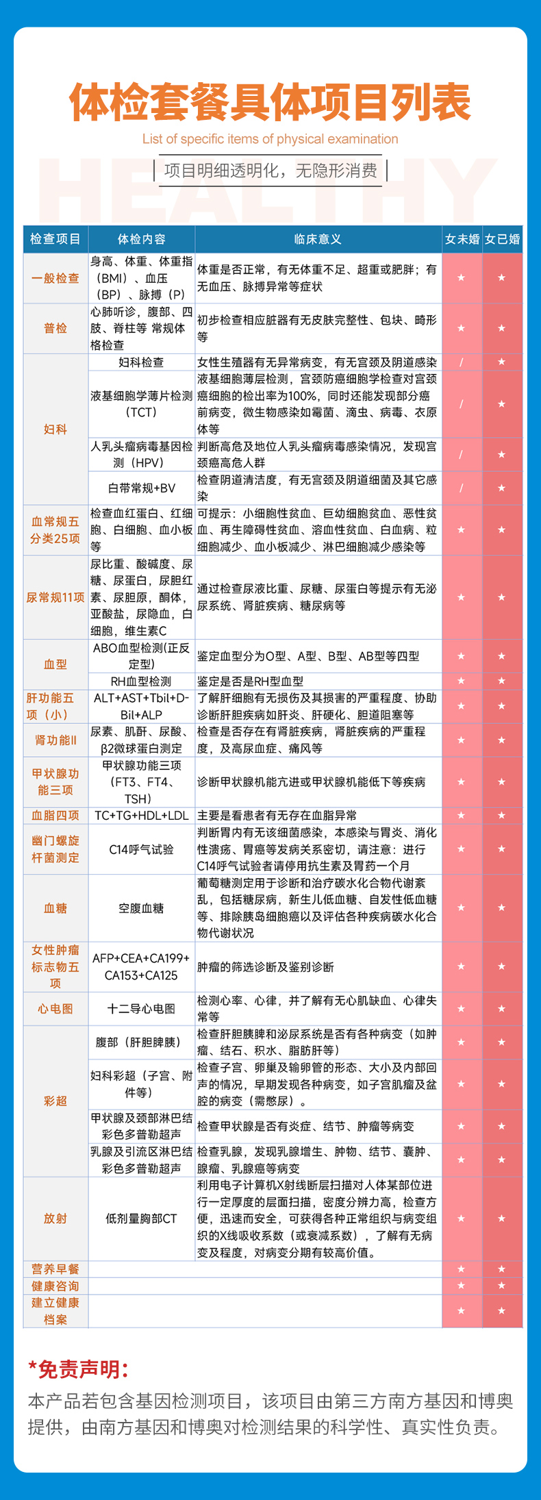 肺部专项 筛查套餐(男/女)