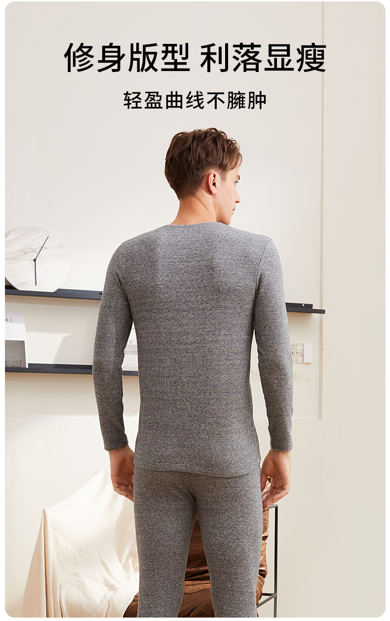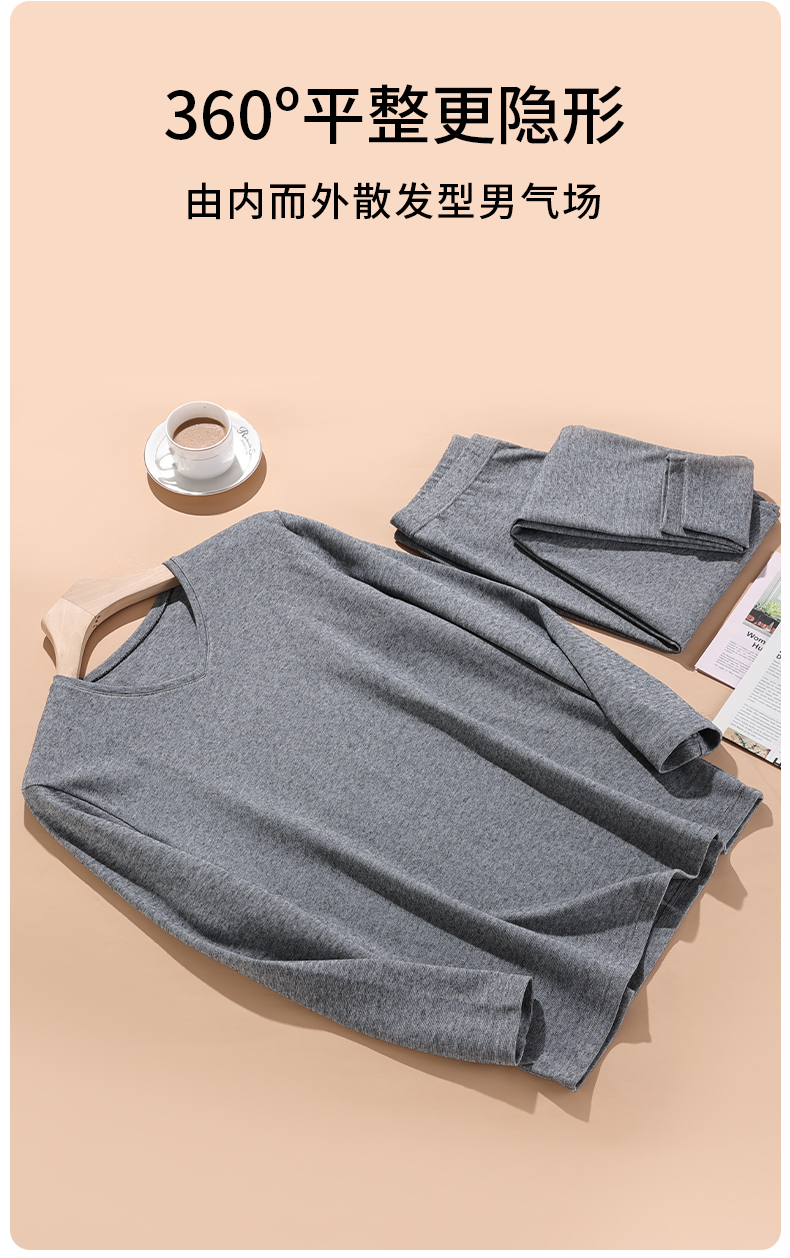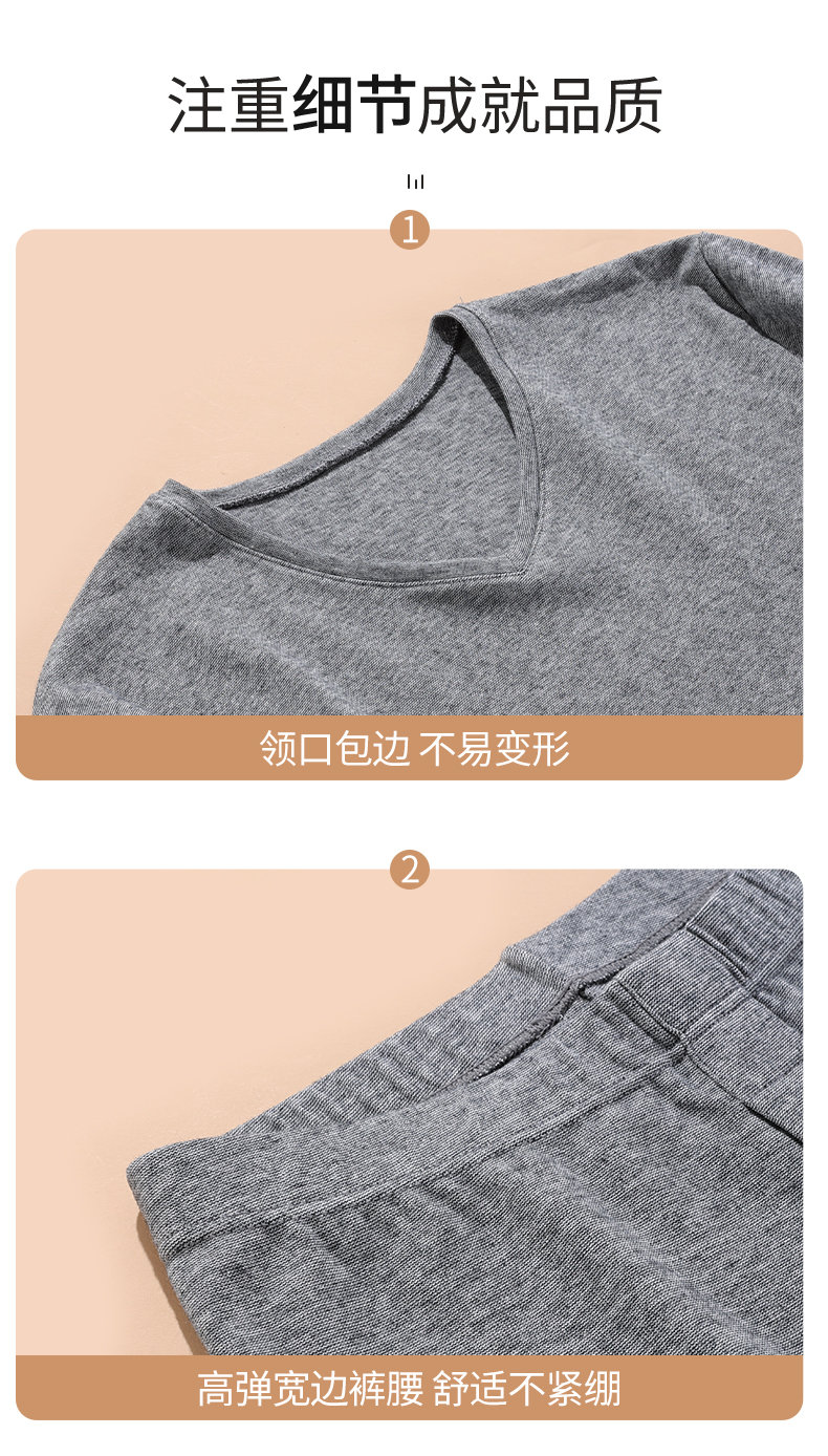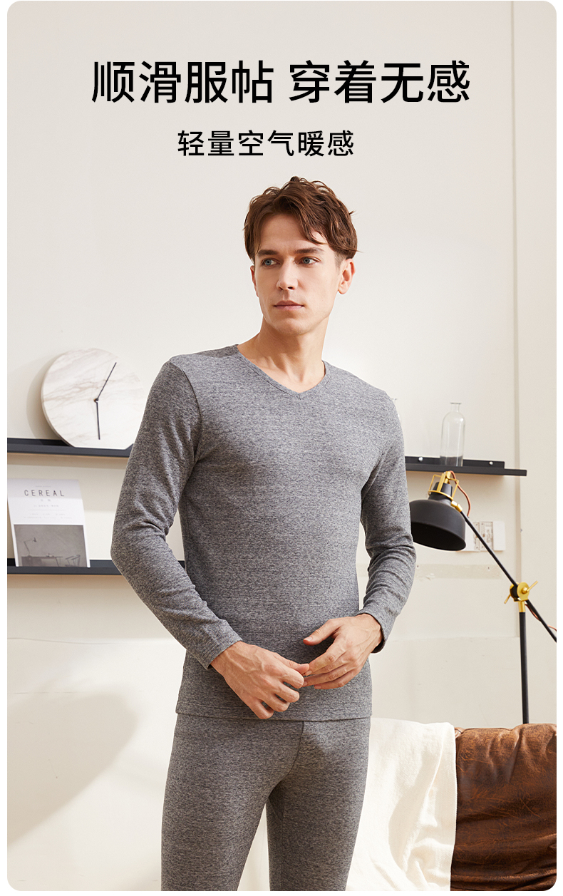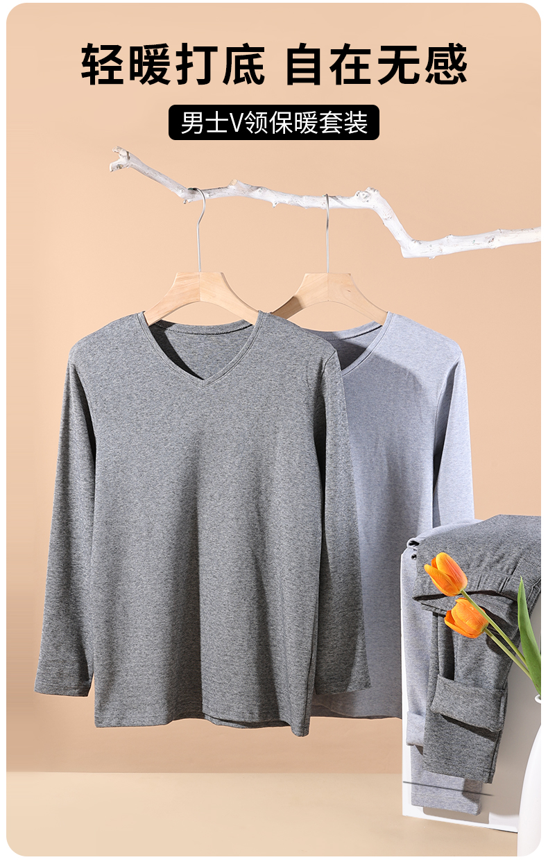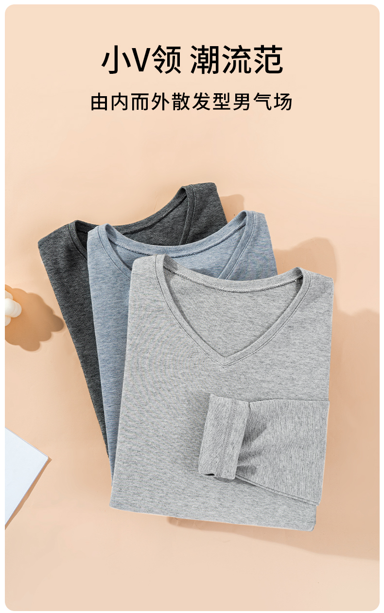 雅黛丽保暖内衣套装V领亲肤舒适简约薄款棉质秋衣裤冬季长袖长裤