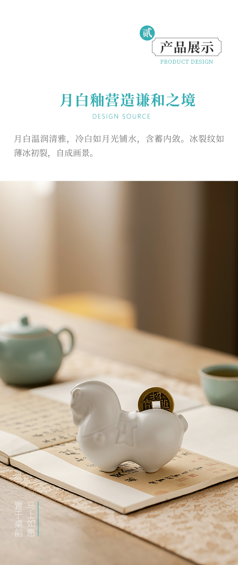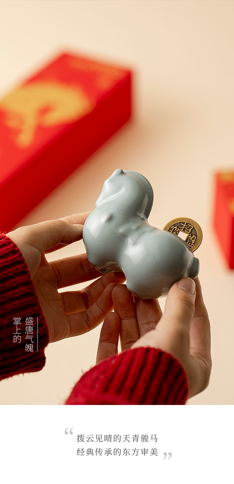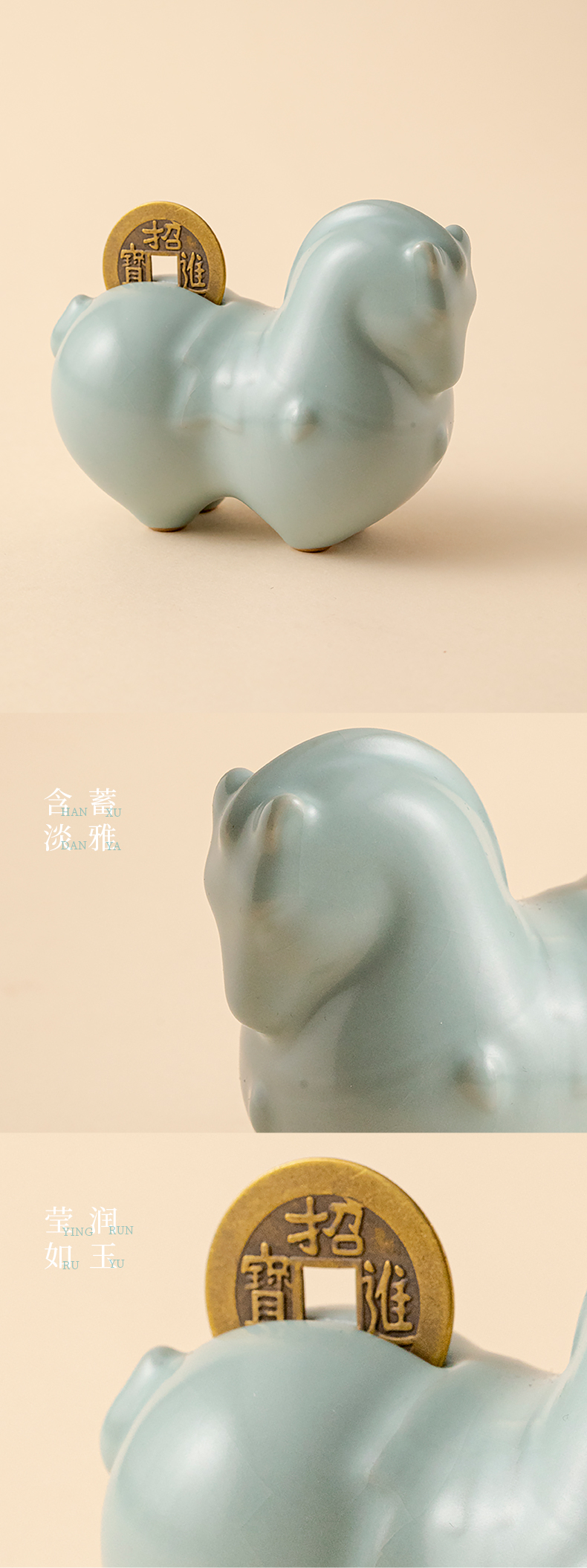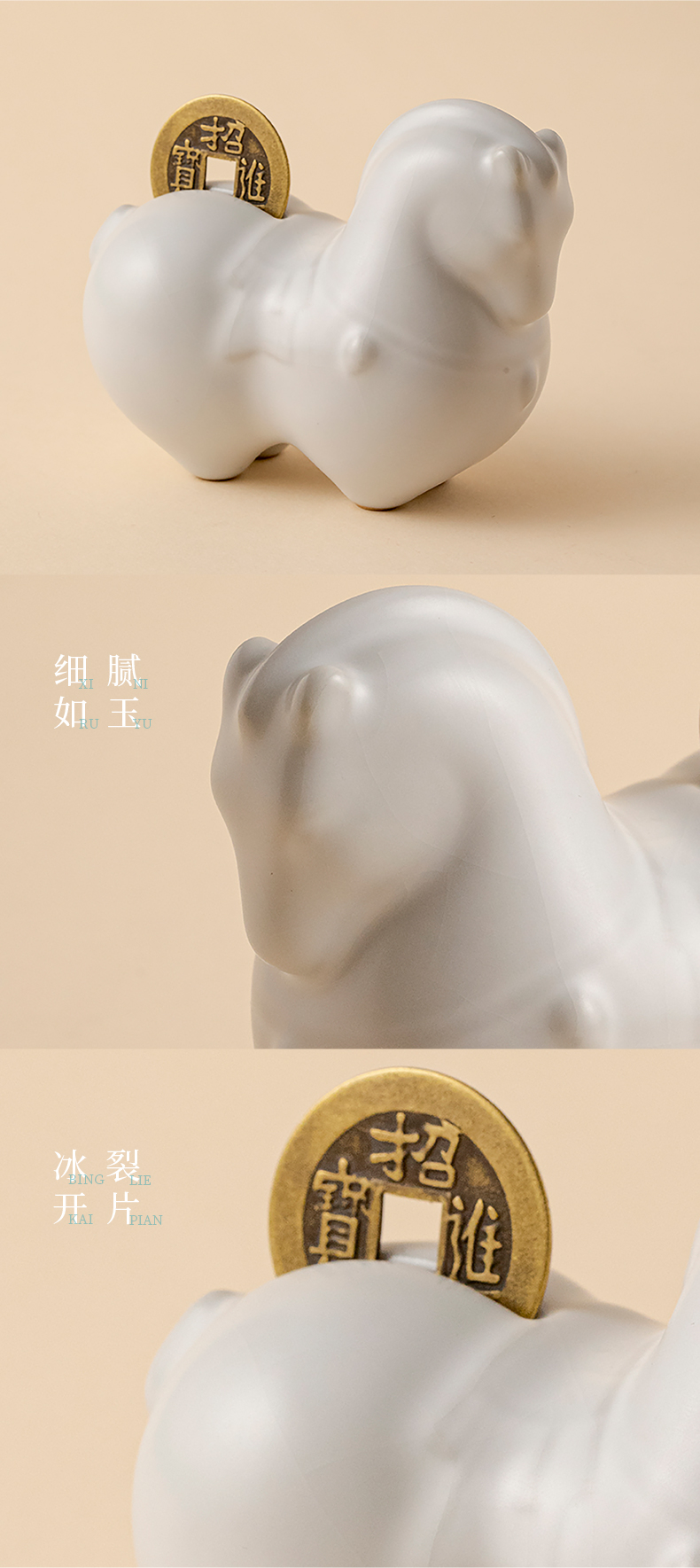 月白釉 “马上有钱” 汝山明 马年主题摆件 汝窑茶宠桌面装饰生肖礼物【官方正版 】