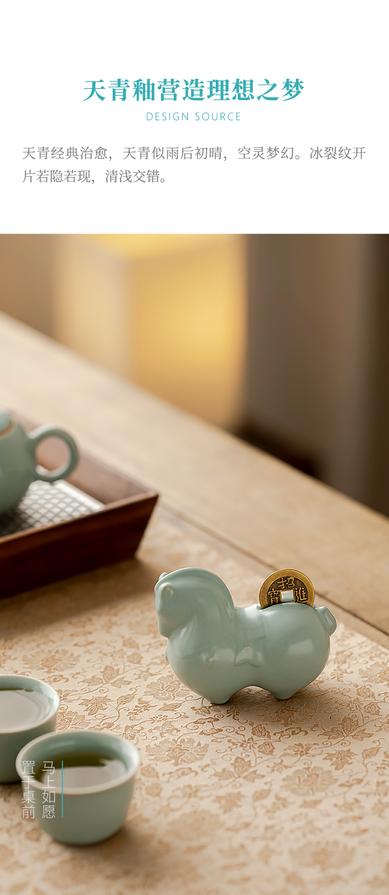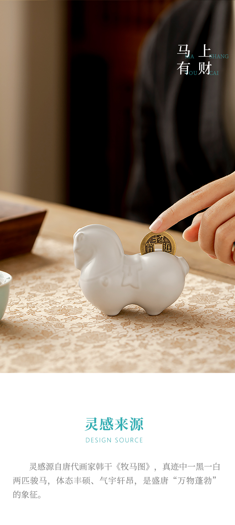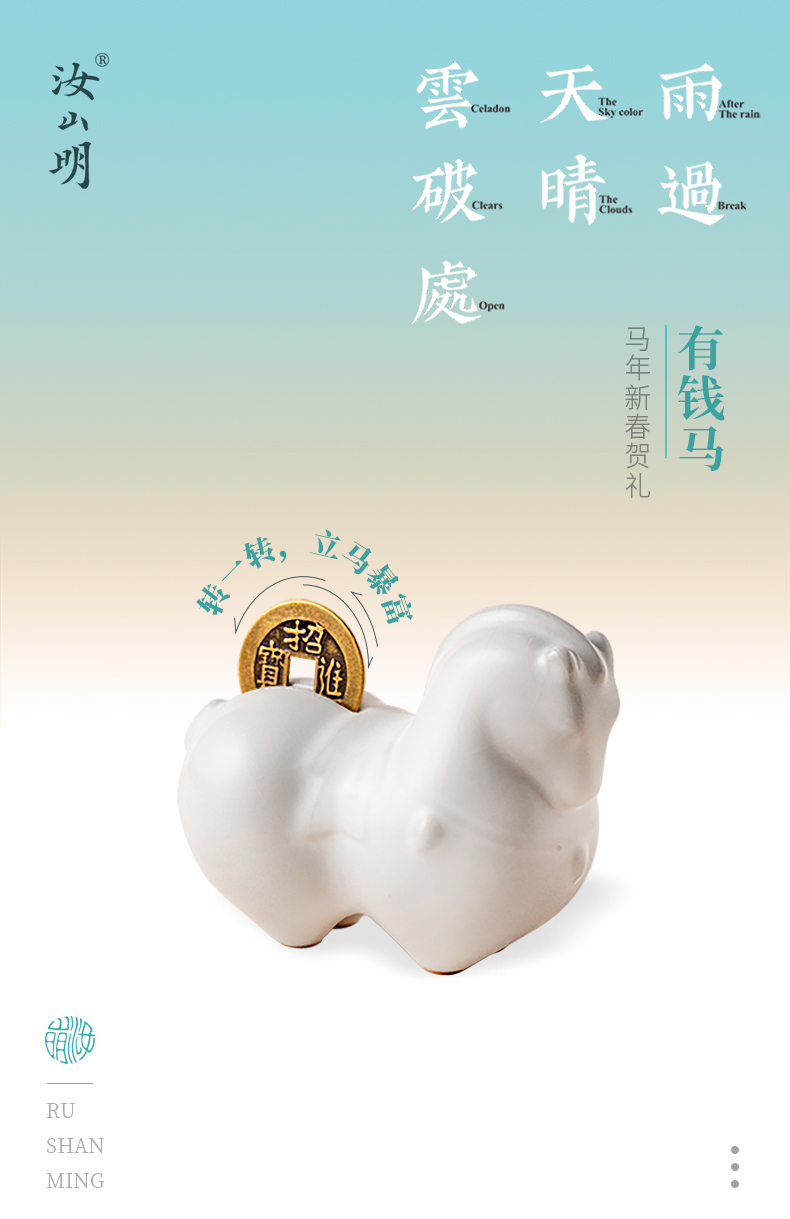 月白釉 “马上有钱” 汝山明 马年主题摆件 汝窑茶宠桌面装饰生肖礼物【官方正版 】