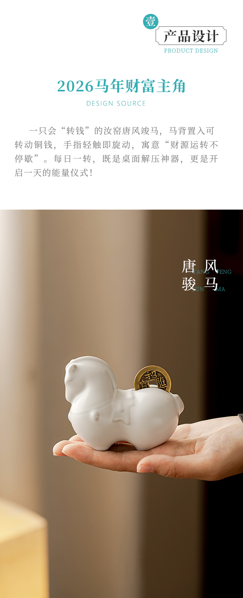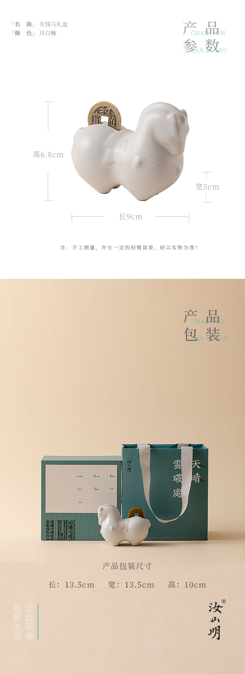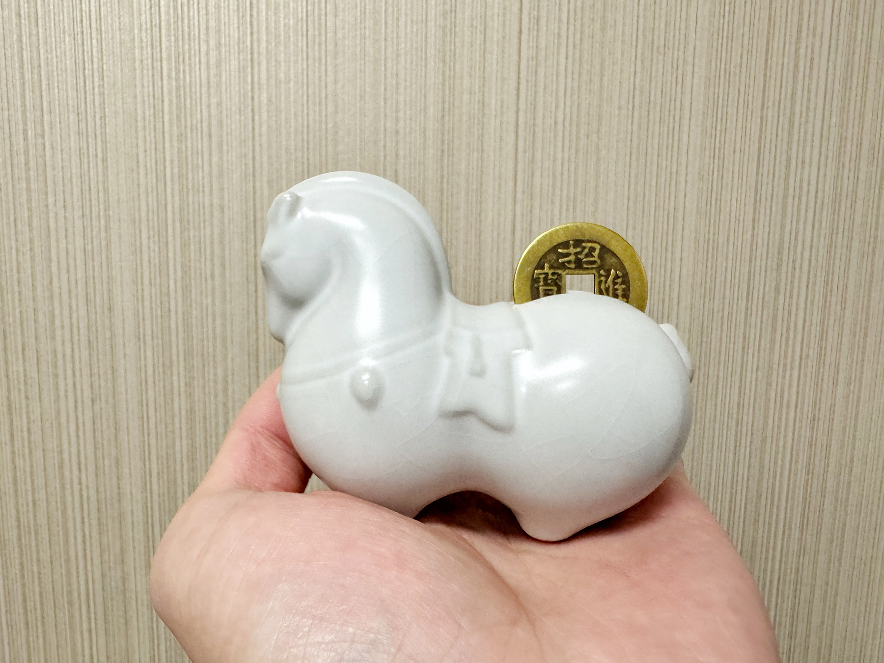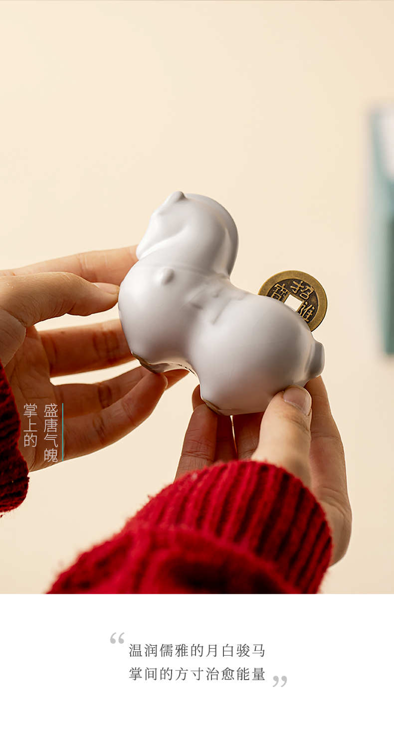 月白釉 “马上有钱” 汝山明 马年主题摆件 汝窑茶宠桌面装饰生肖礼物【官方正版 】