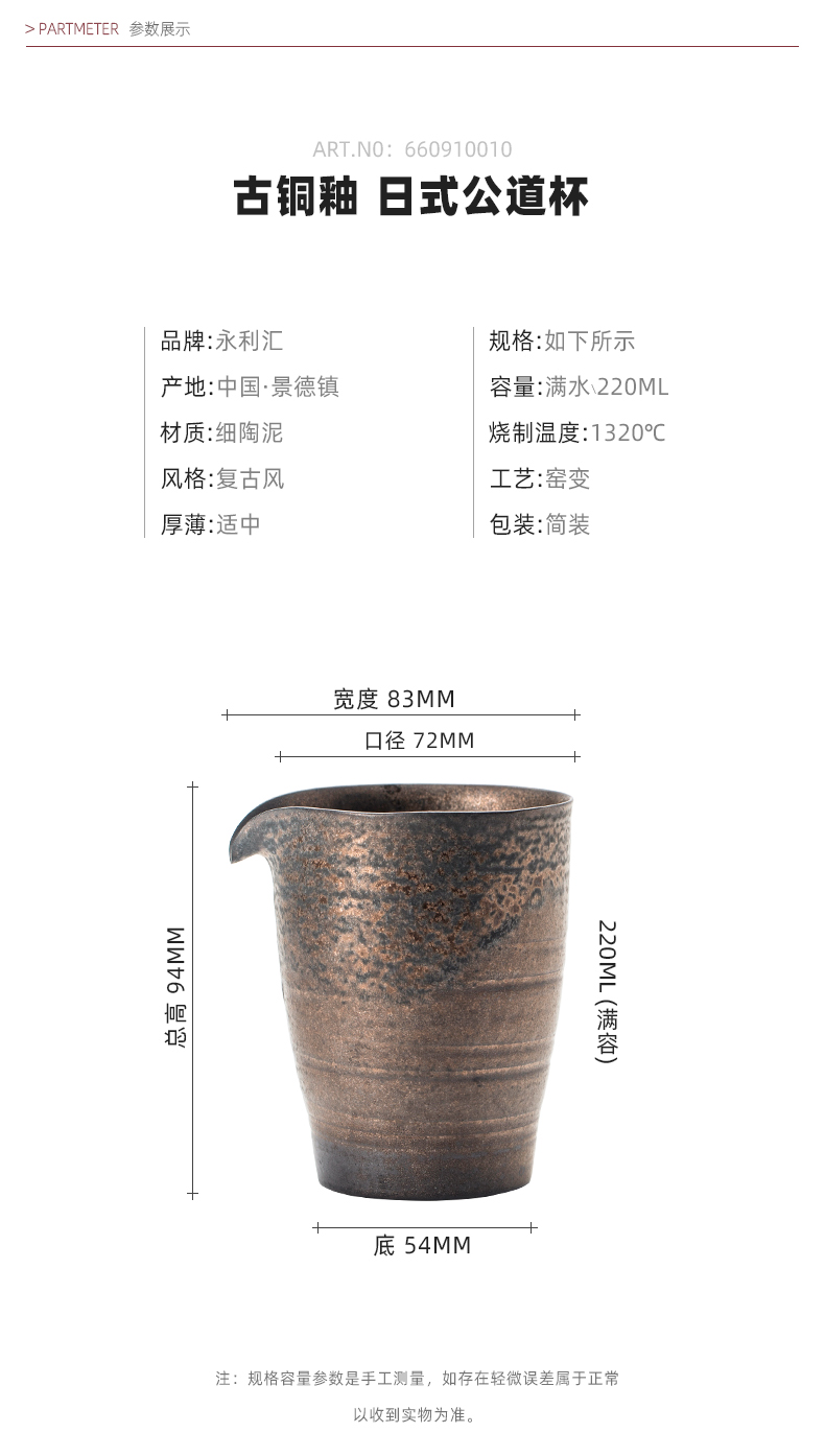 永利汇日式公道杯分茶器单个功道公平倒茶杯茶海小号功夫茶具