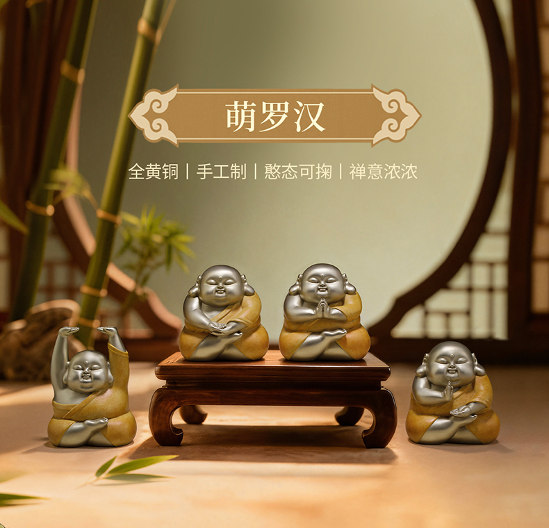 铜师傅《萌罗汉》客厅工位佛像铜摆件 家居装饰工艺品