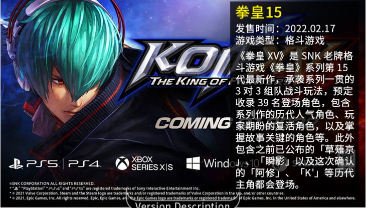 【畅玩卡可租】二手PS5游戏 拳皇15 拳皇XV KOF 中文版