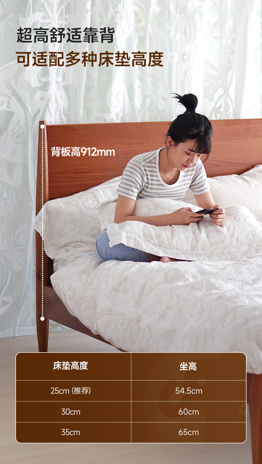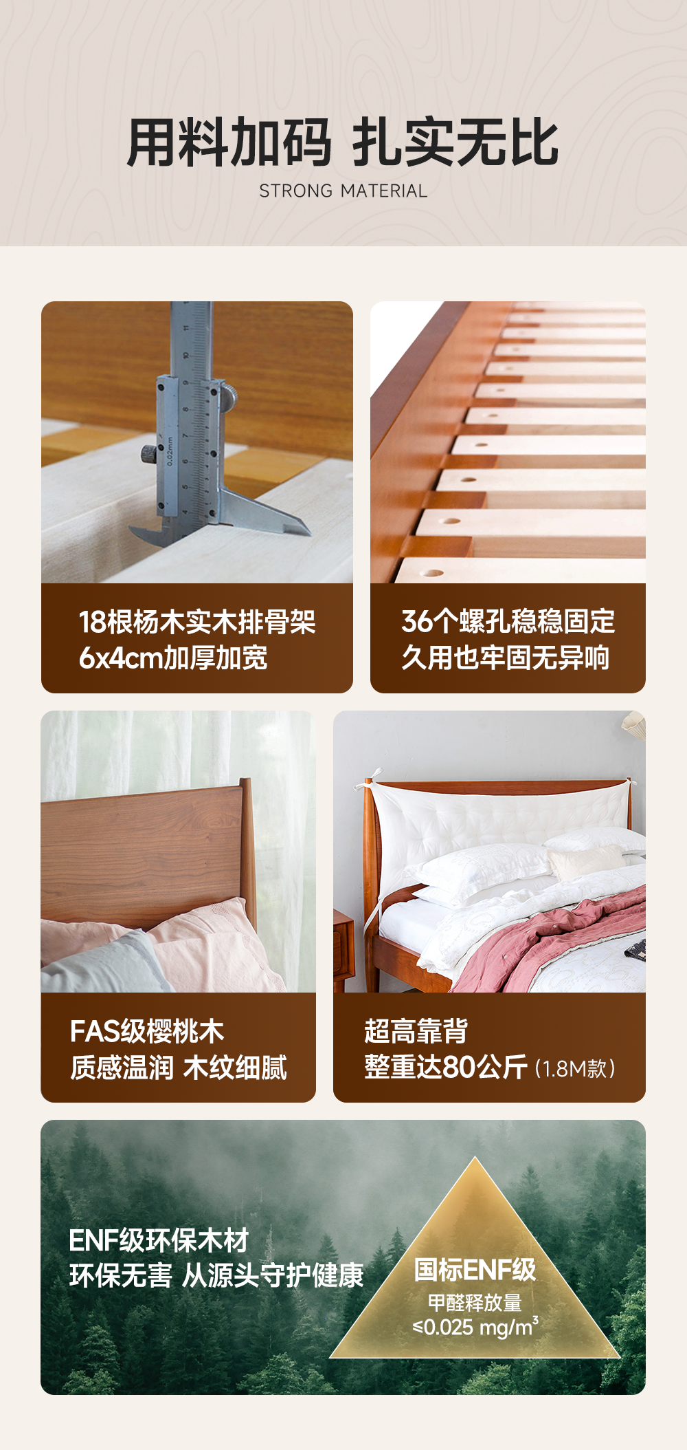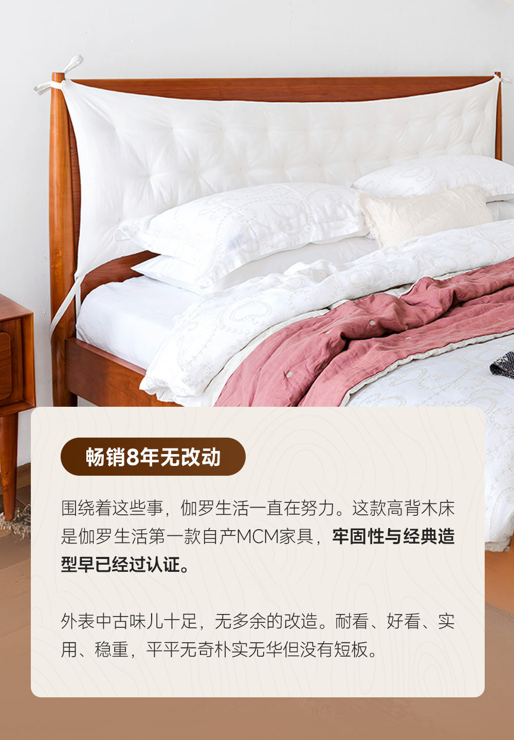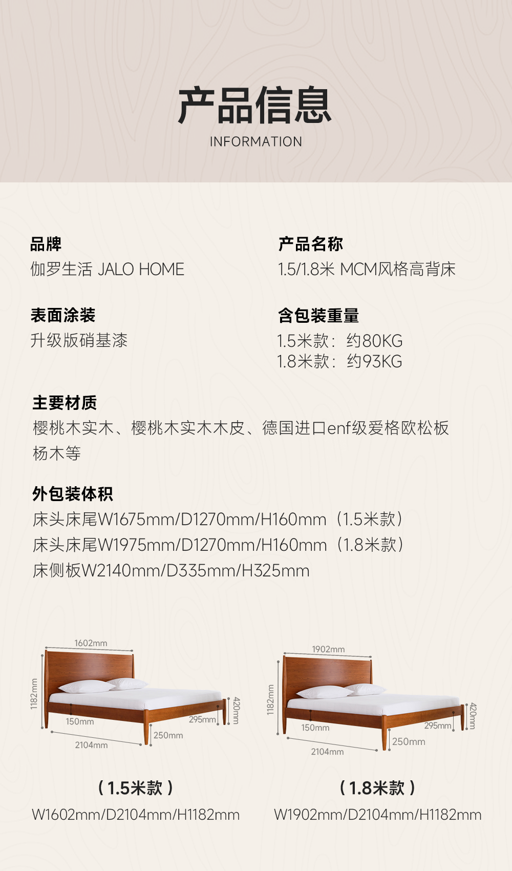 伽罗 JALO 高背款北欧MCM风格樱桃木木床(M01)