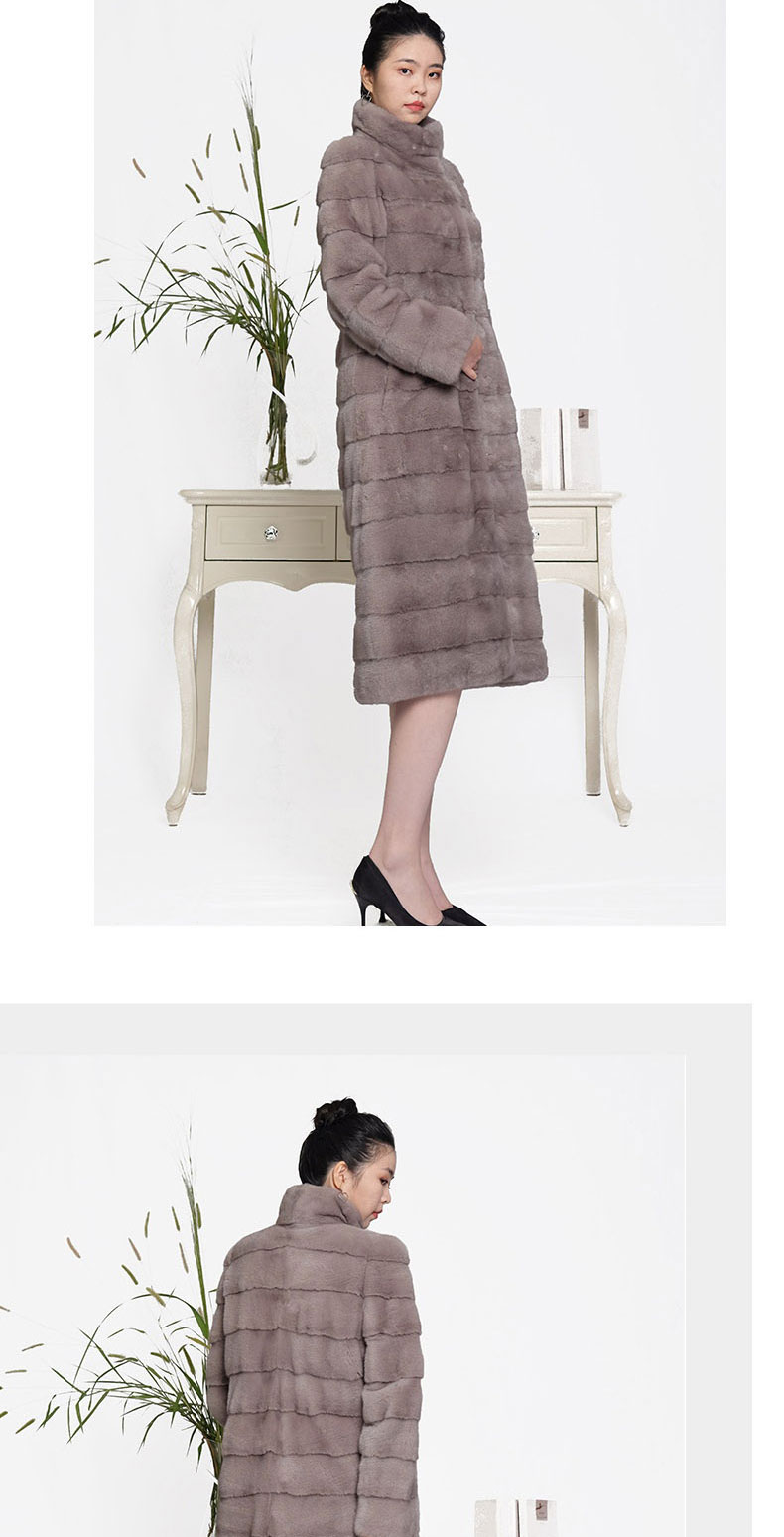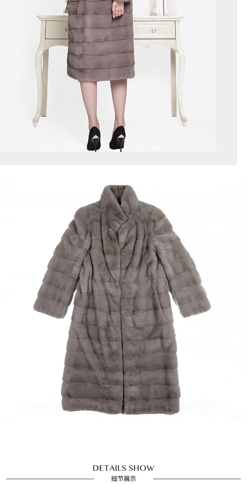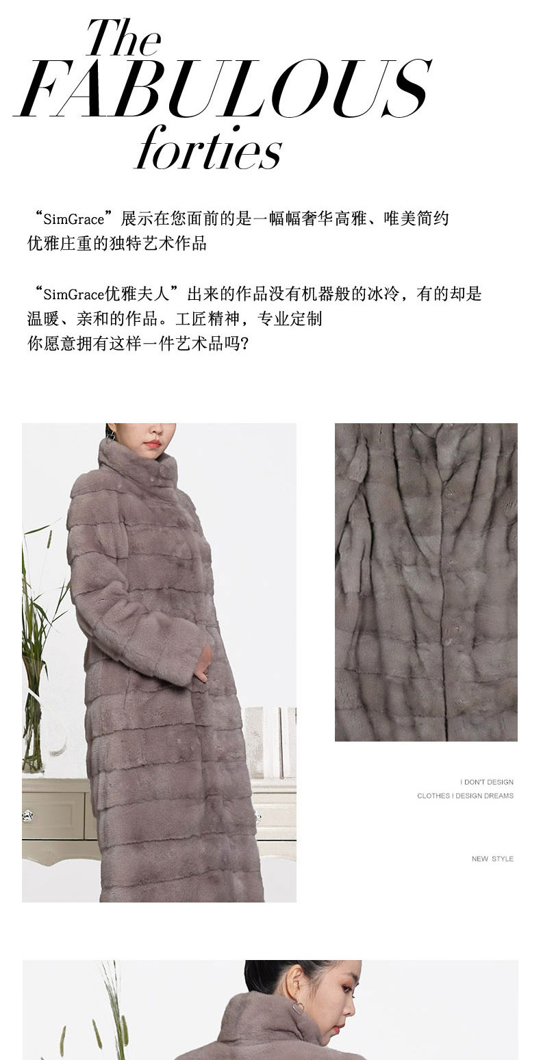 SIM GRACE 优雅夫人 女士轻奢水貂横排设计外套立领收身中长款时尚英伦风大衣