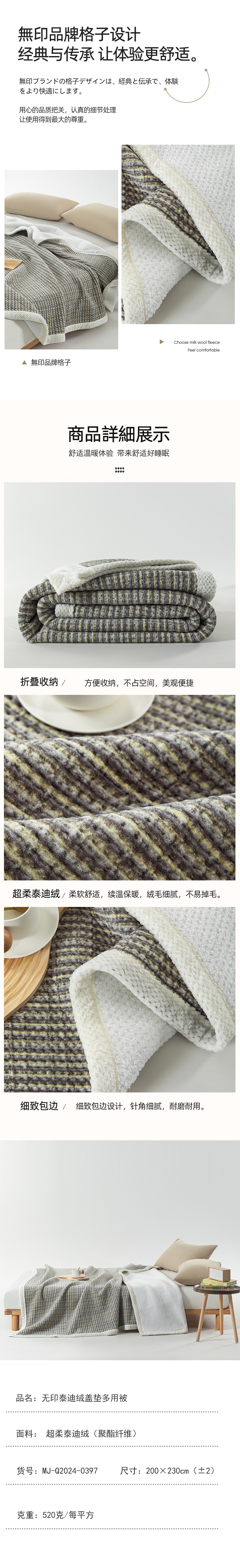 无印良品泰迪绒盖垫多用被MJ-Q2024-0397