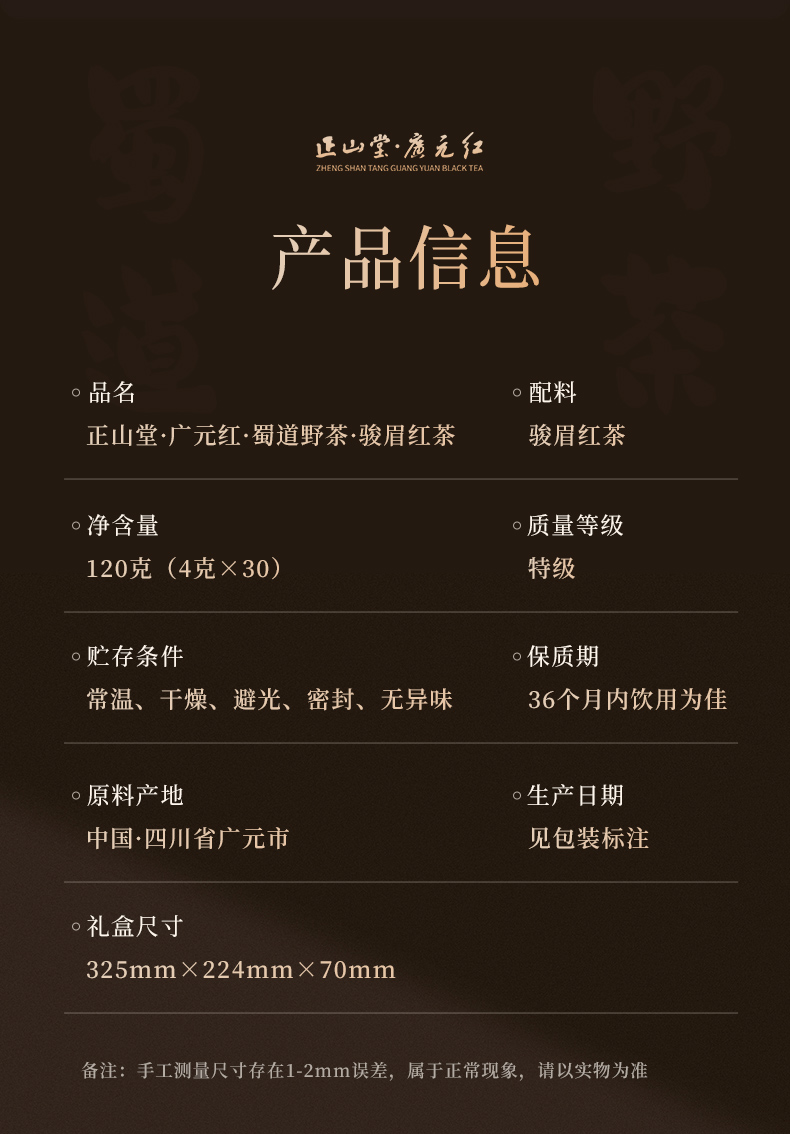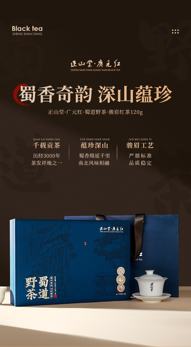 正山堂广元红 蜀道野茶礼盒装 四川特级正宗红茶茶叶送礼长辈120g