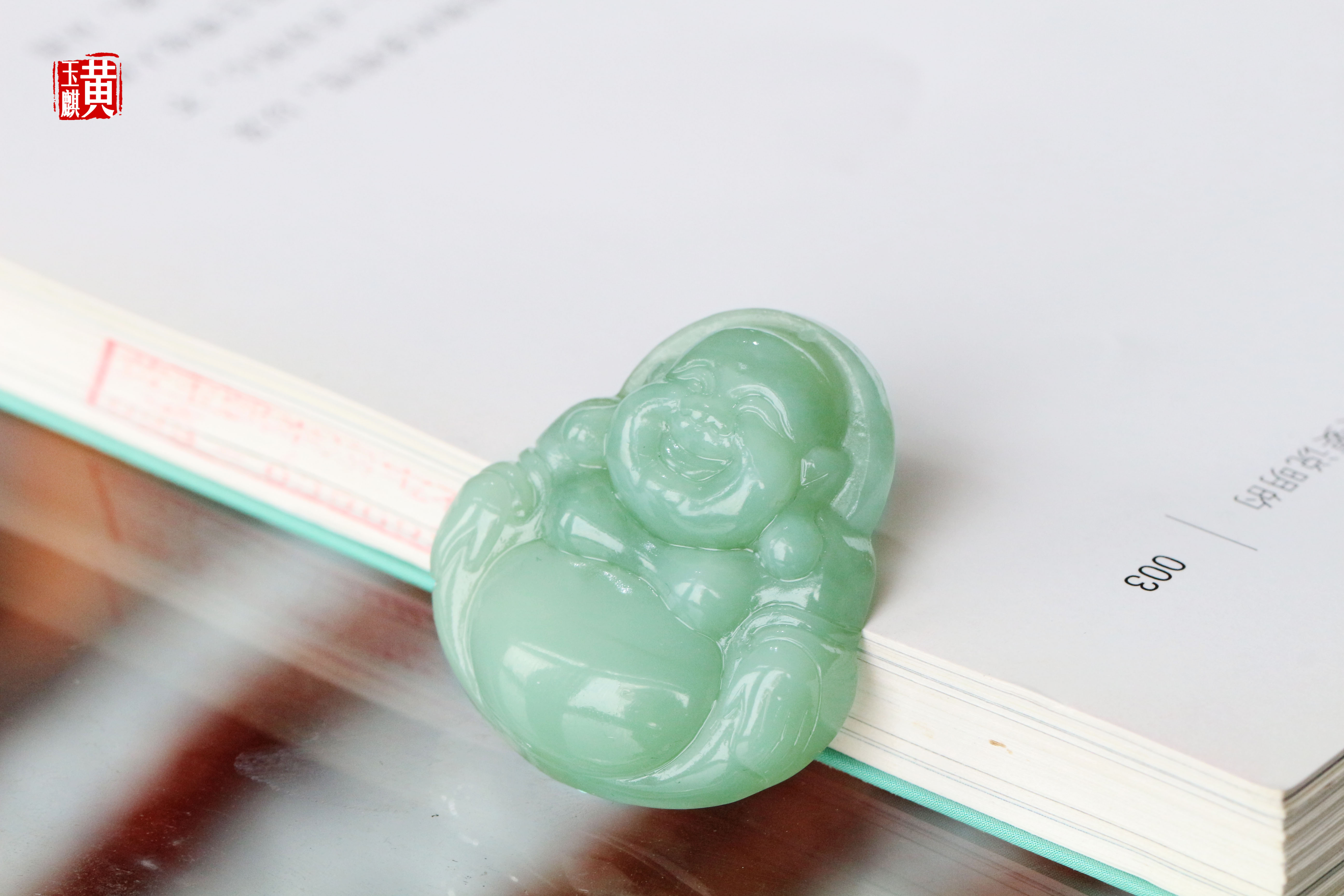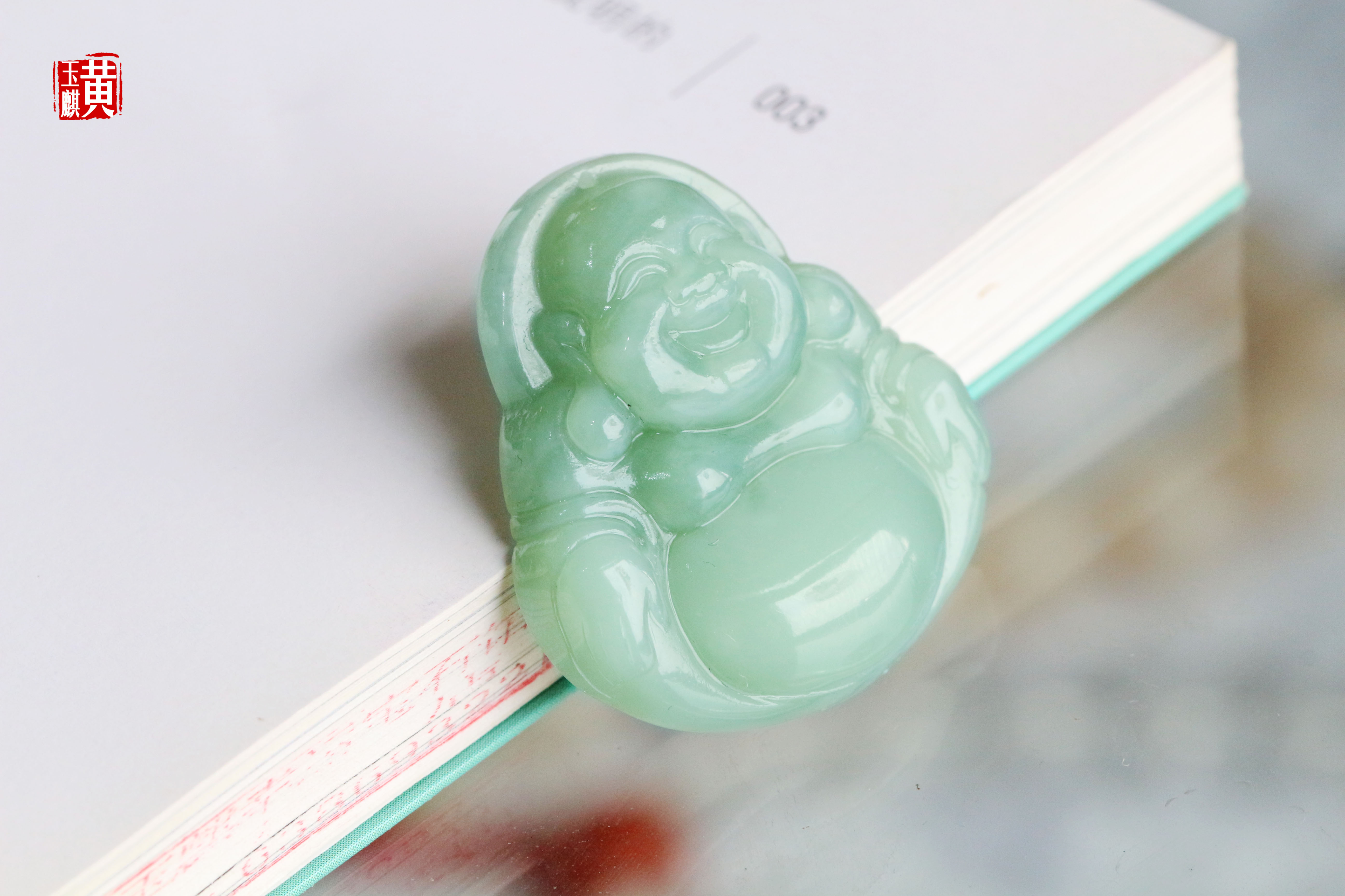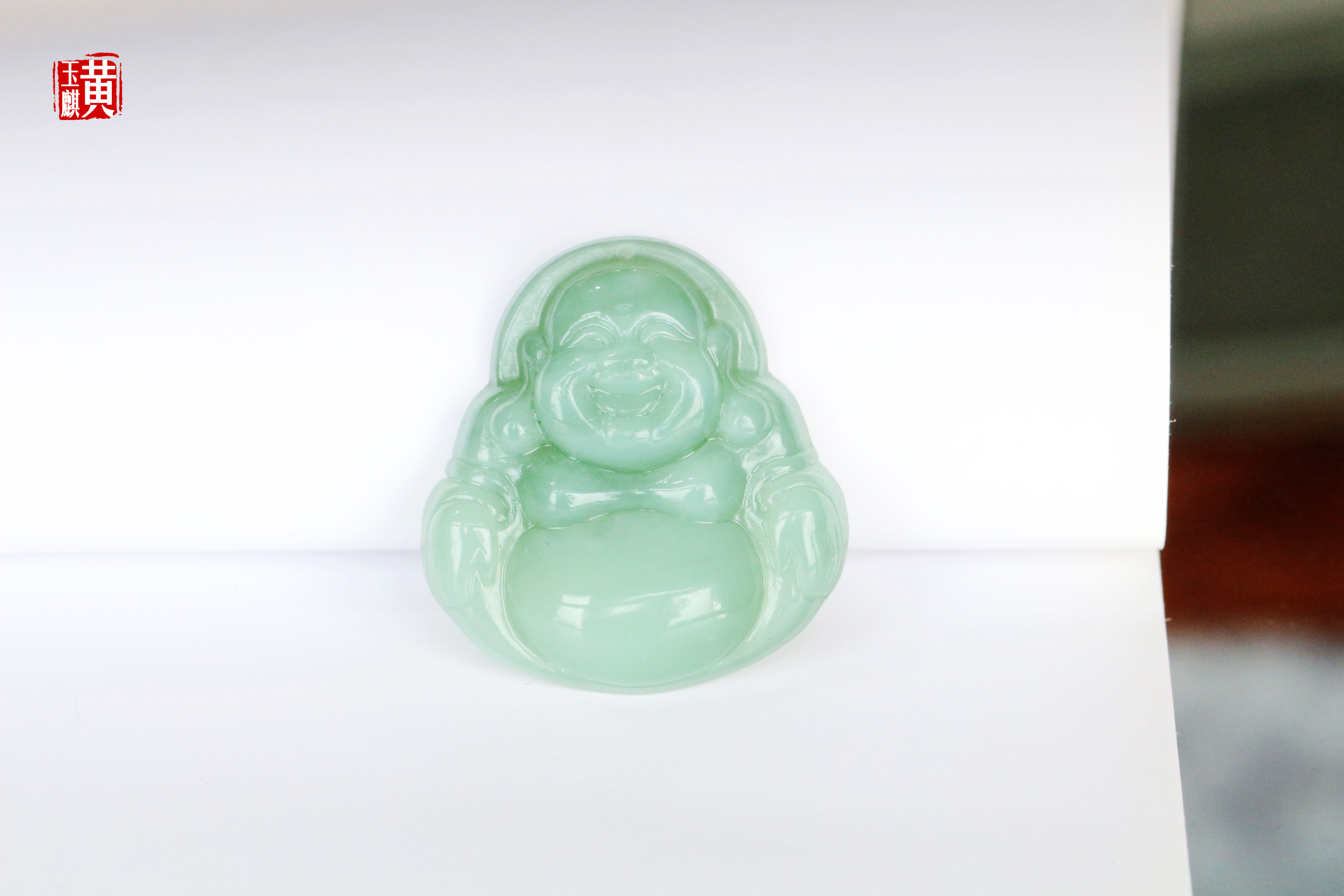 [ 福在眼前 ] 猫眼碧玉精雕笑佛吊坠 | 雕工精湛,玉质细腻,弥勒笑意盈盈,大肚容纳天地