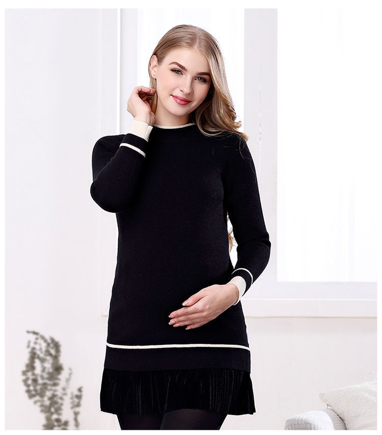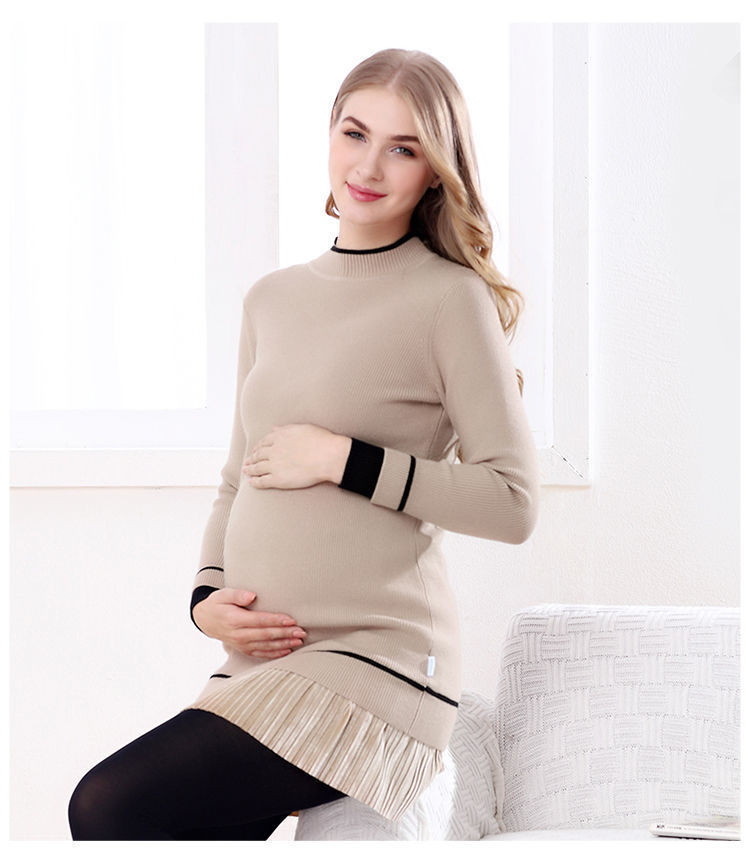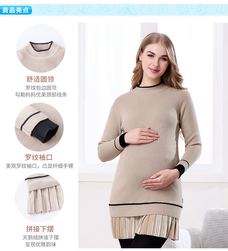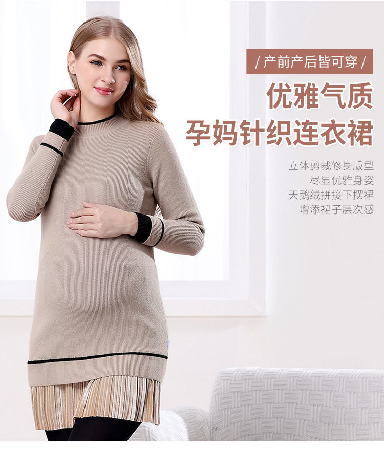 贝贝怡孕妇针织连衣裙春秋装保暖针织衫产后中长款毛衣冬季打底衫