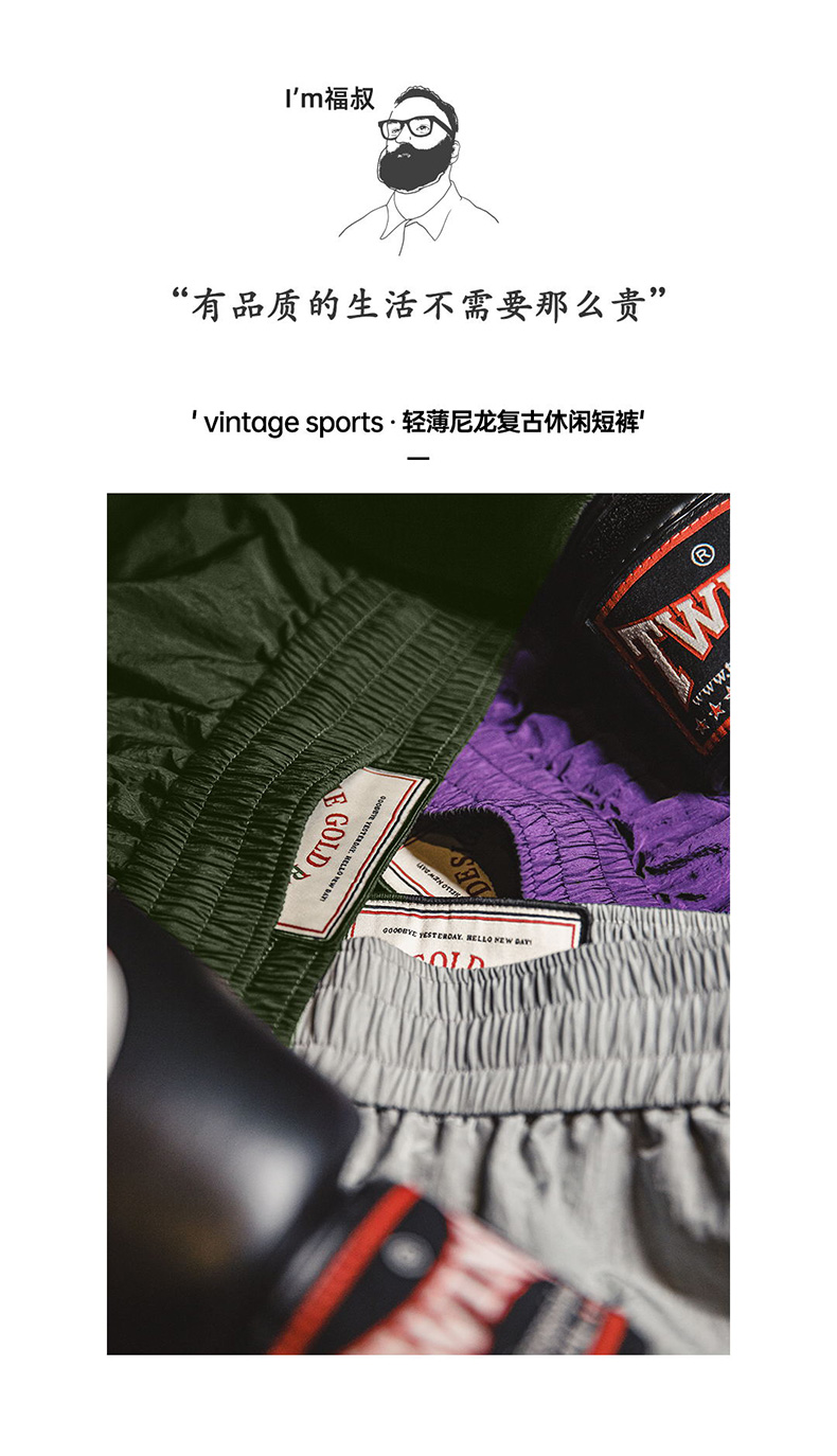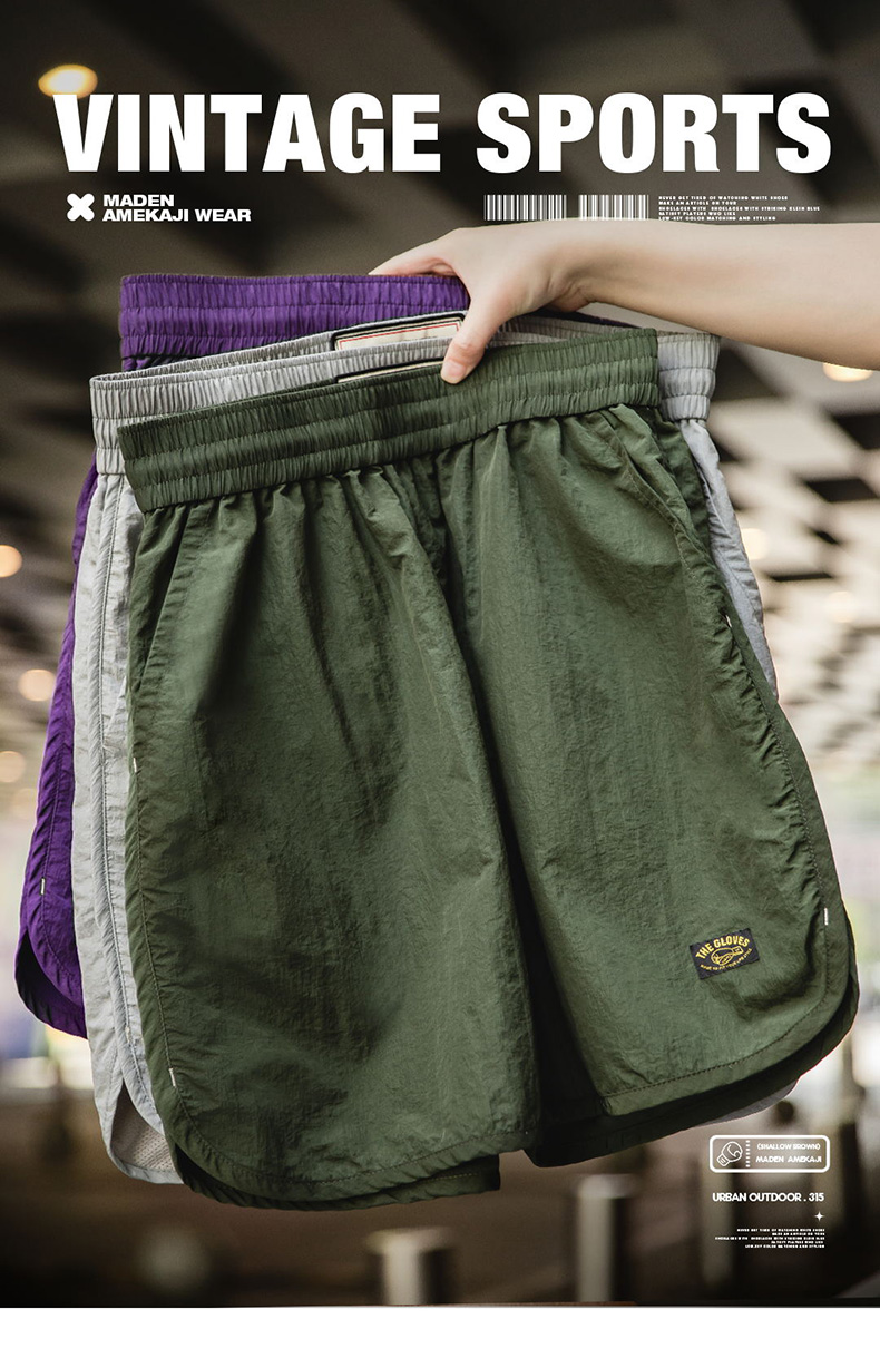 工装优选 美式复古尼龙速干短裤薄款透气直筒运动篮球五分裤男夏