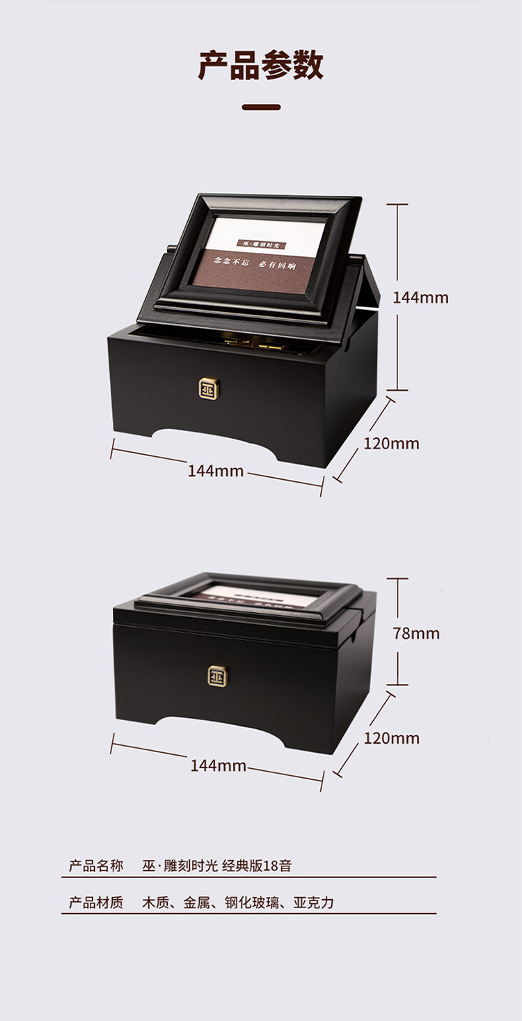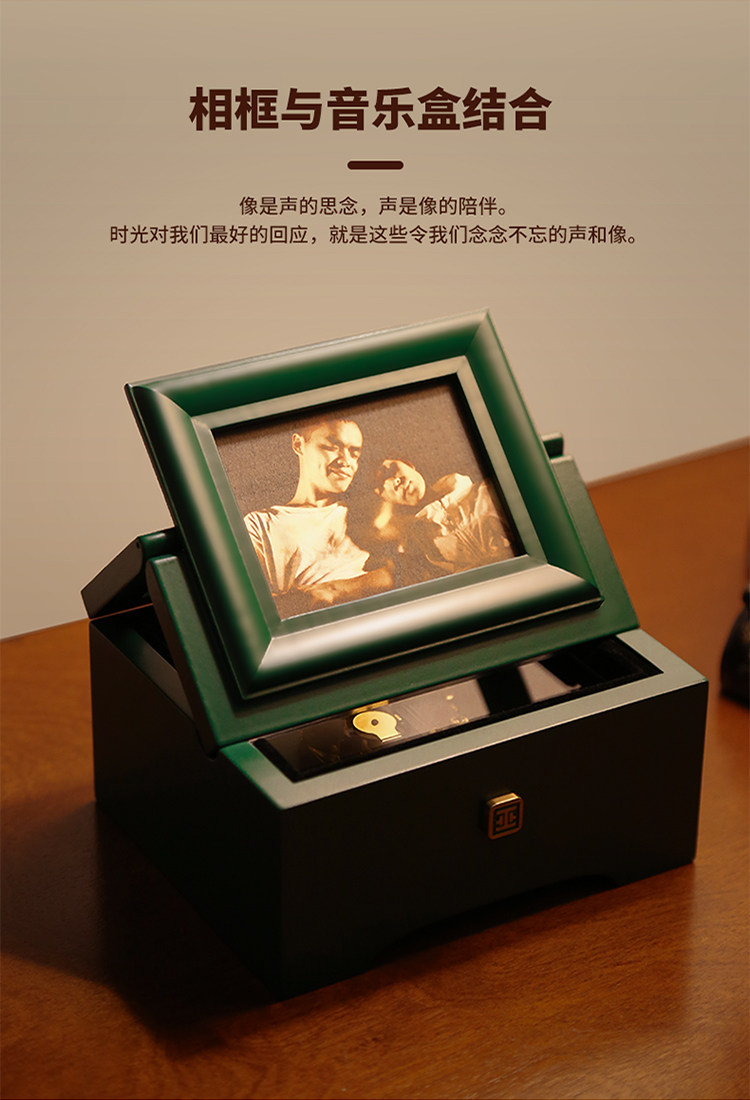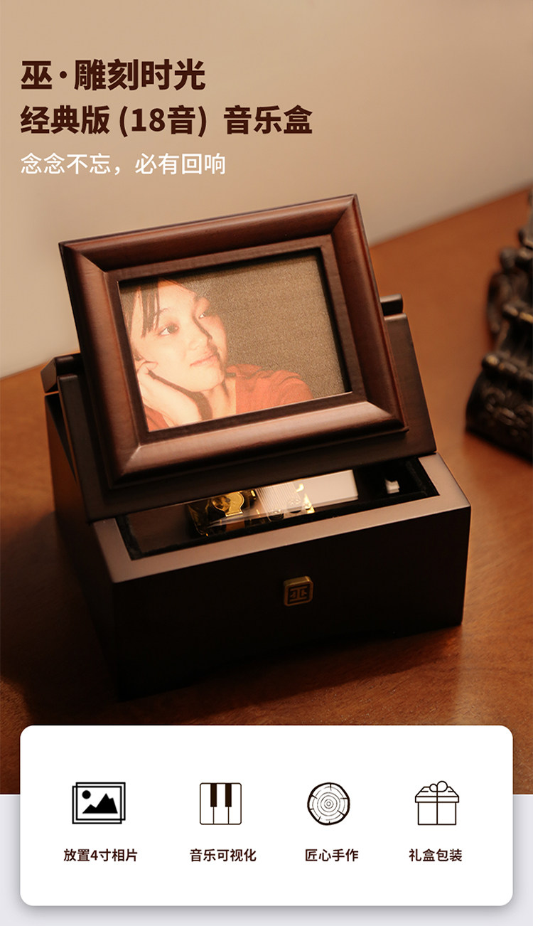 巫雕刻时光经典版相片音乐盒 木质可定制照片结婚生日礼物八音盒