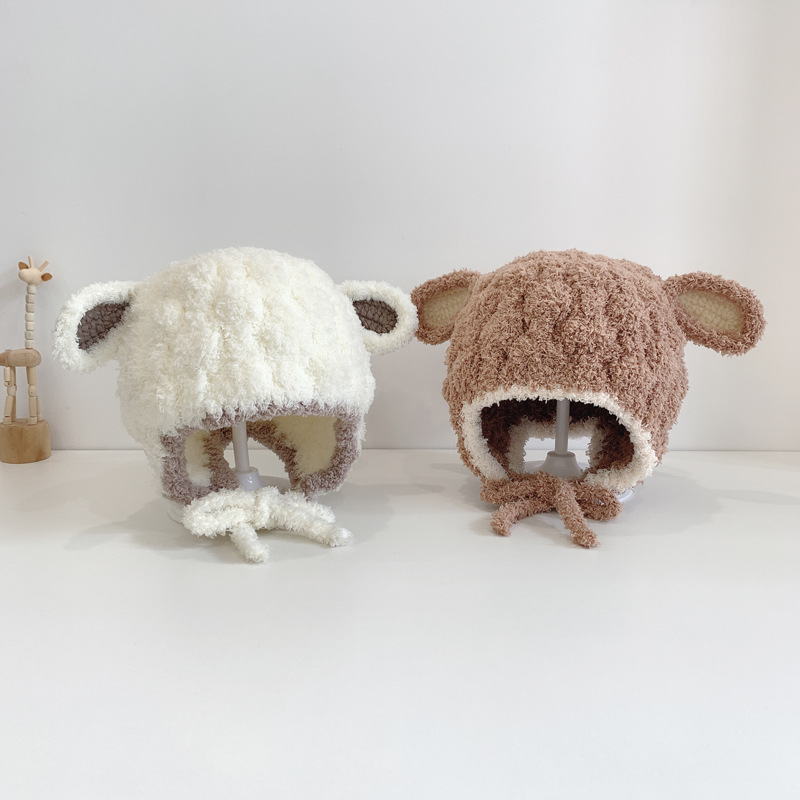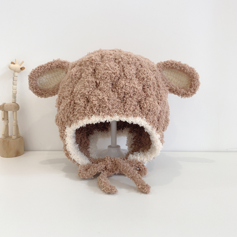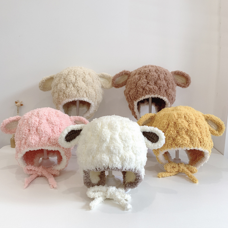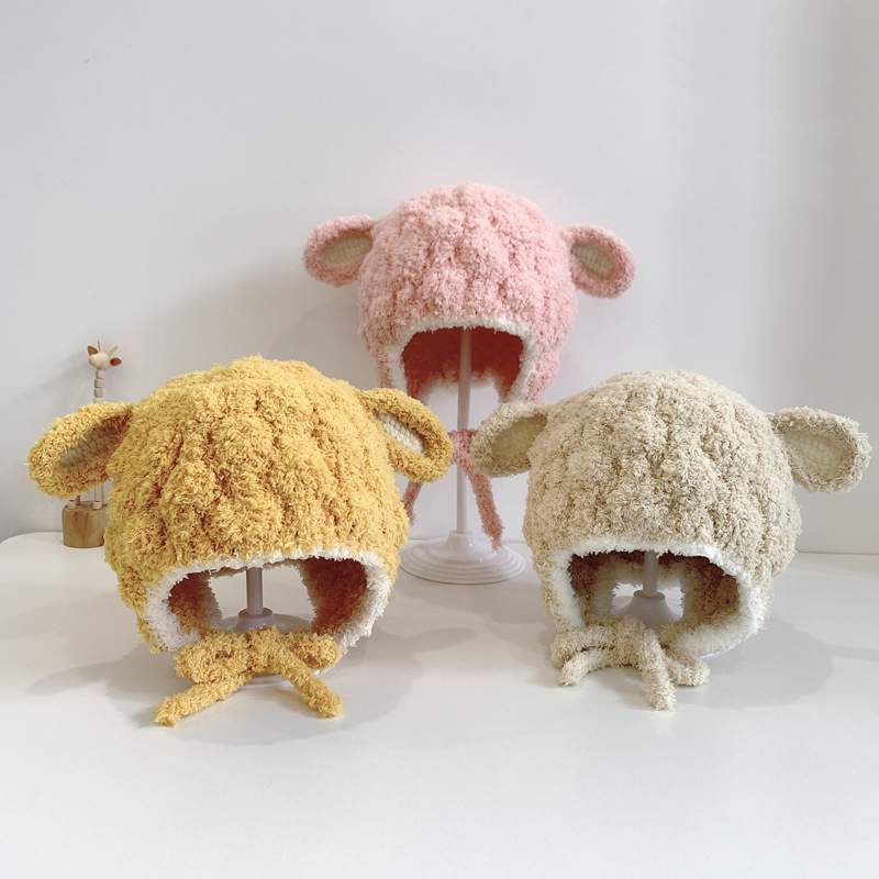 婴儿帽子秋冬新款卡通可爱针织宝宝护耳帽婴童儿童毛线帽