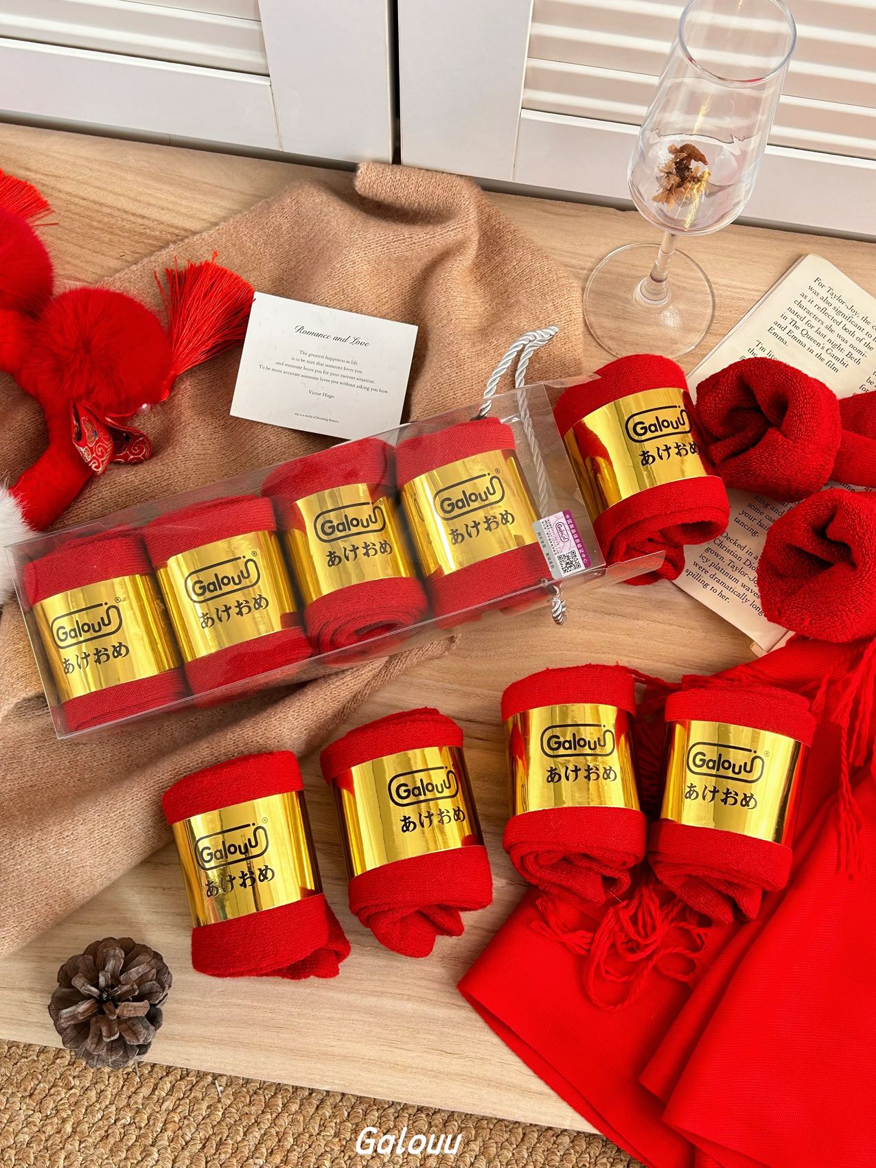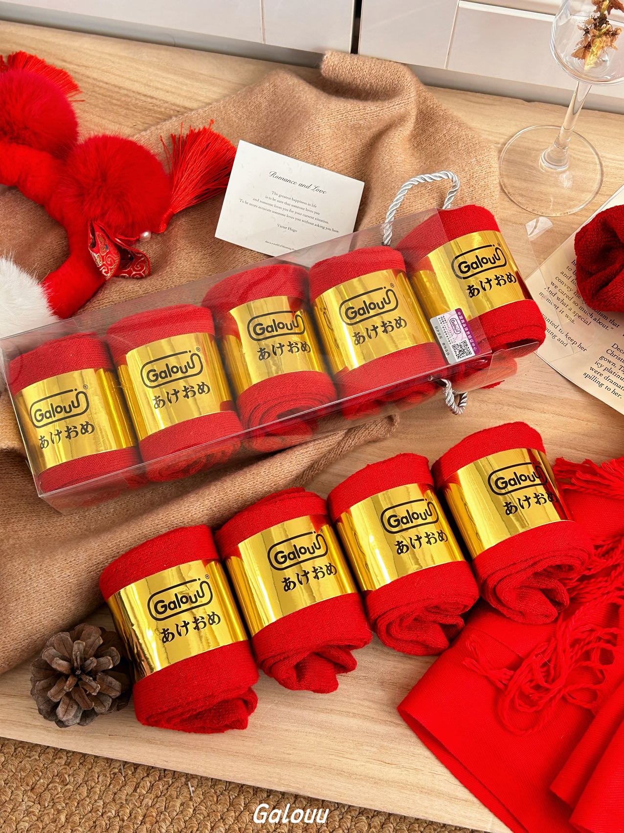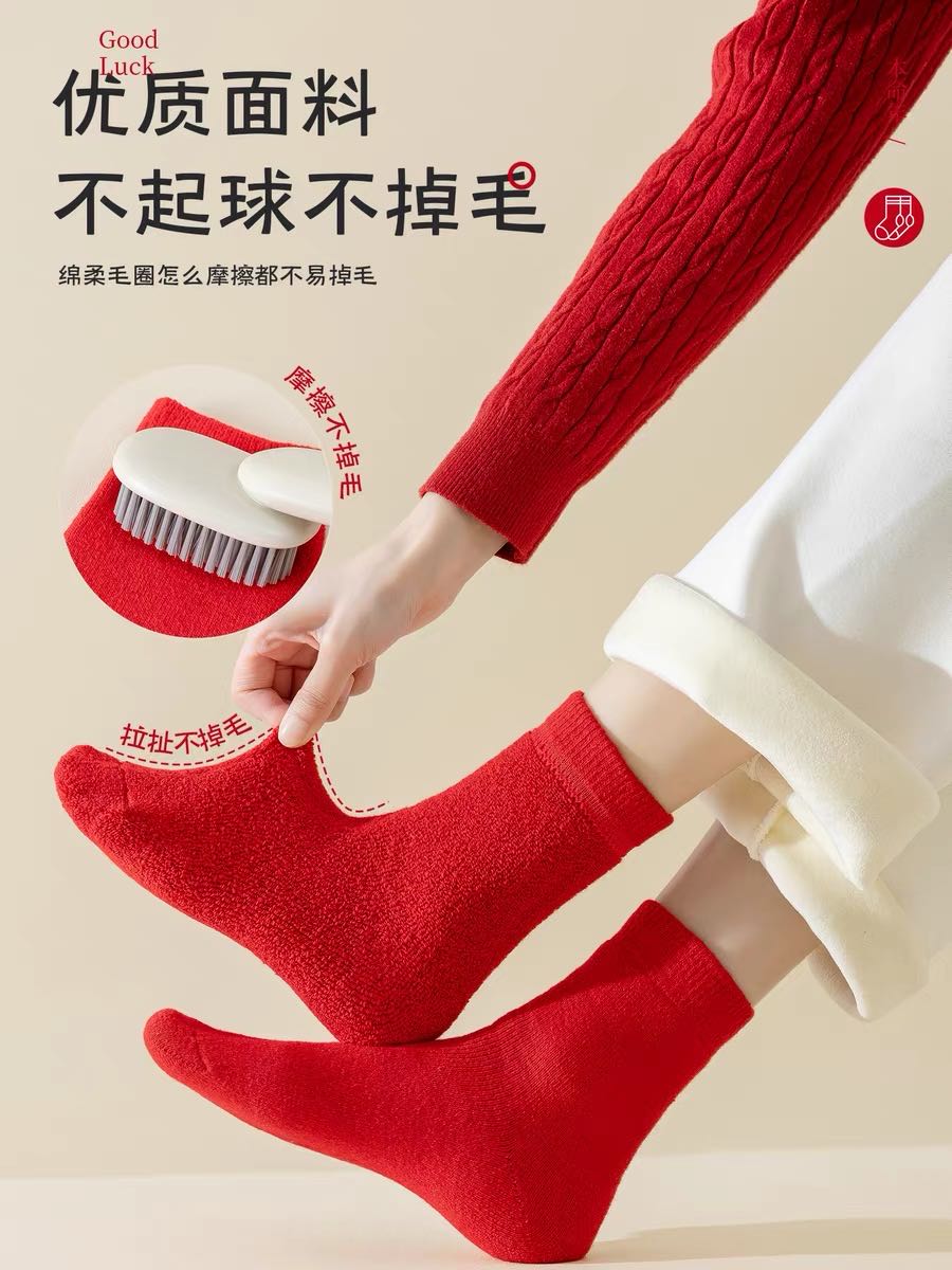 Galouu正红色新年本命年毛圈礼盒袜