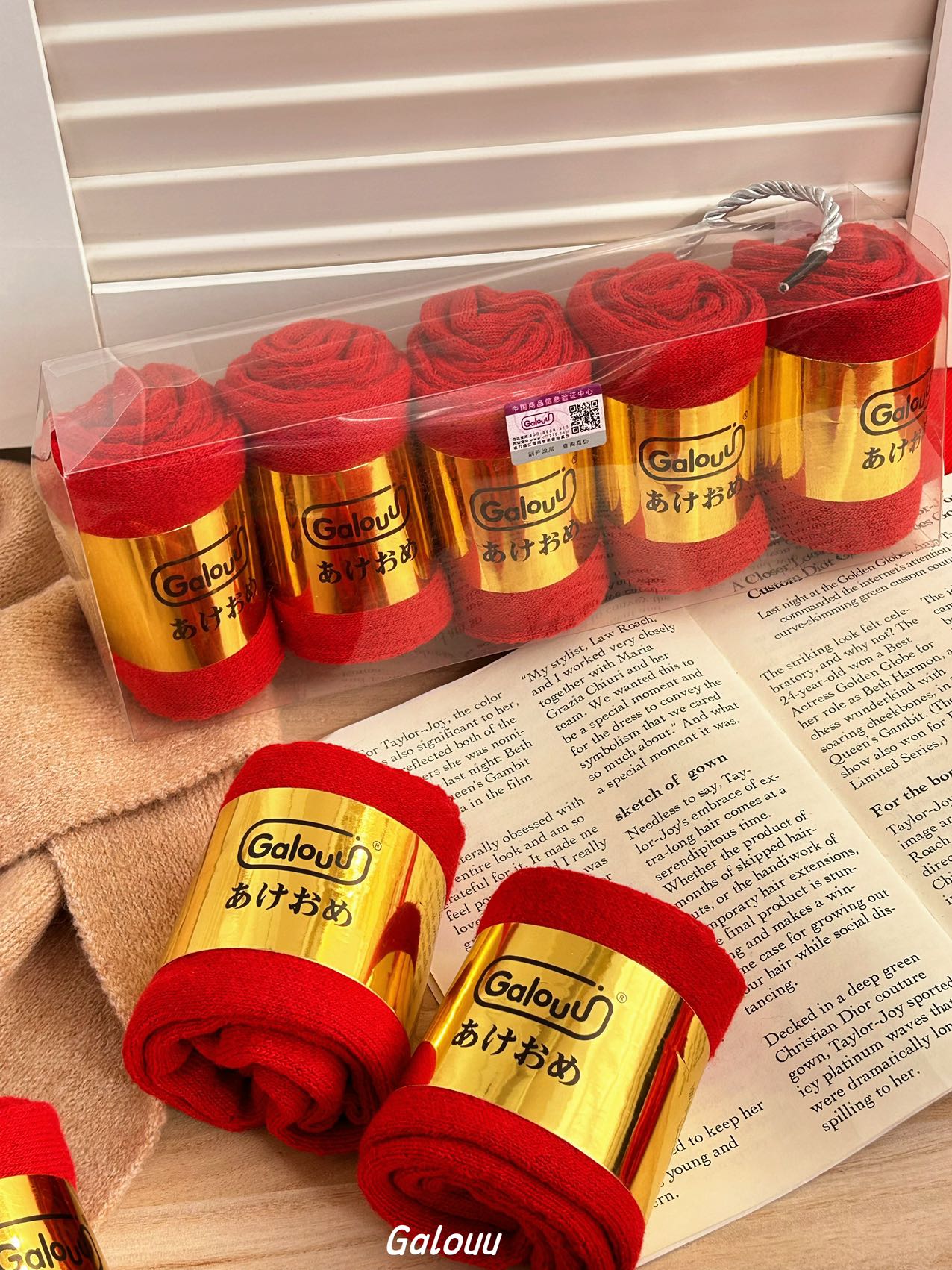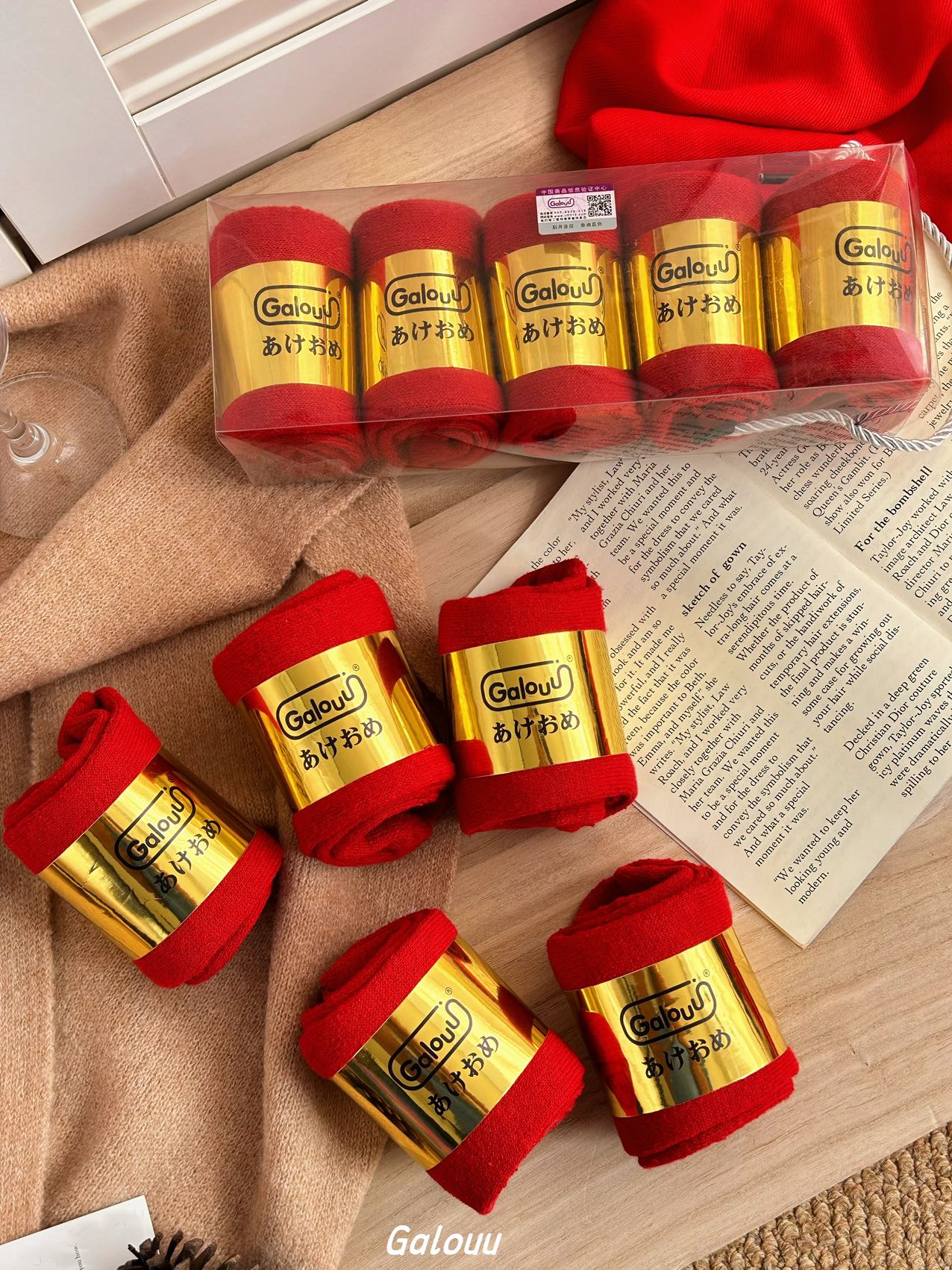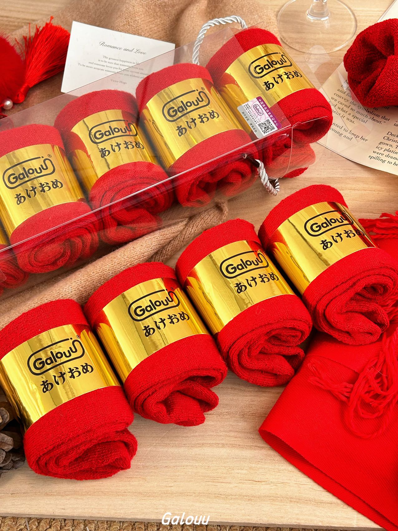 Galouu正红色新年本命年毛圈礼盒袜