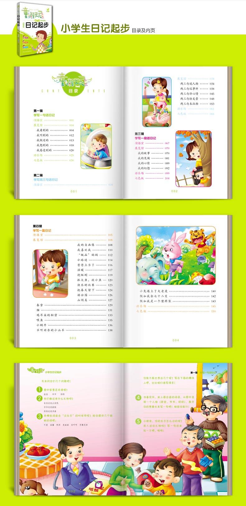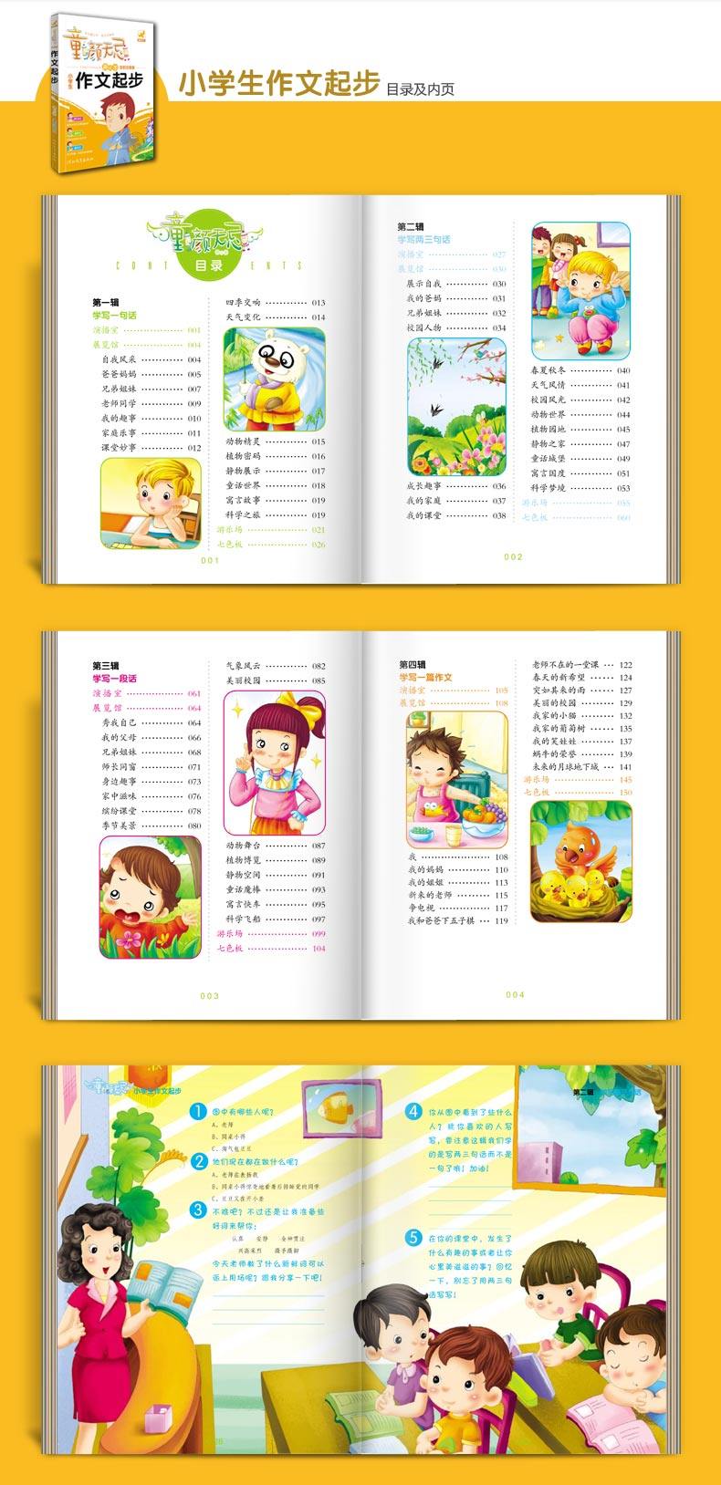 小学生作文书 彩图注音本套共4册:小学生看图说话写话、好词好句好段、作文起步、日记起步。富有亲和力的角色助读,轻松的图解引导示范,形式有趣、多变的递进演练。小学生作文!