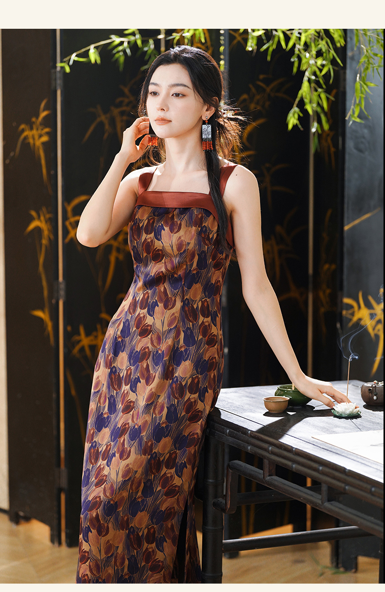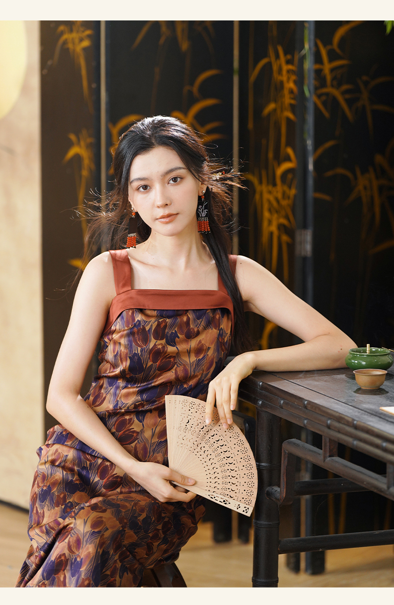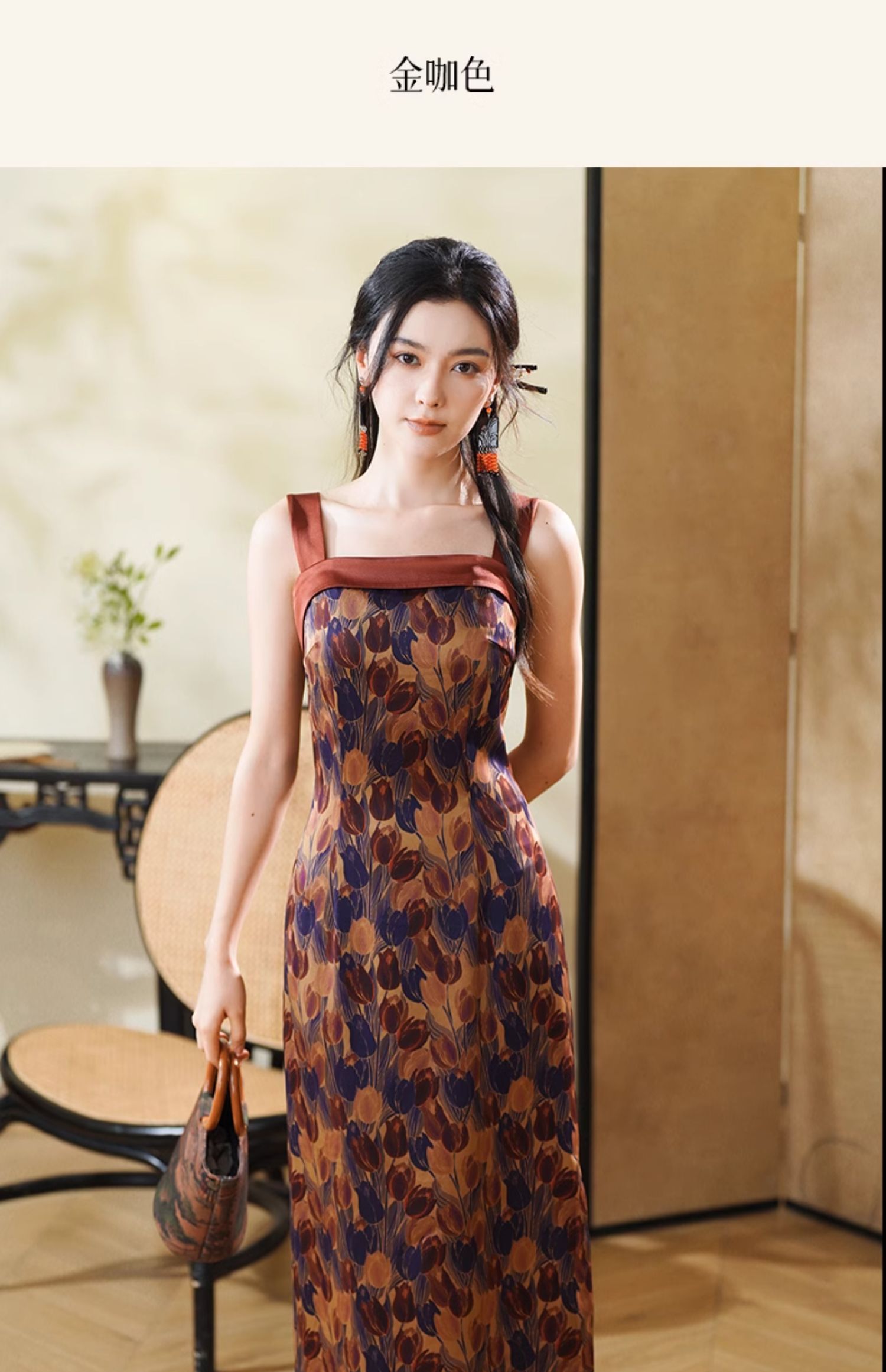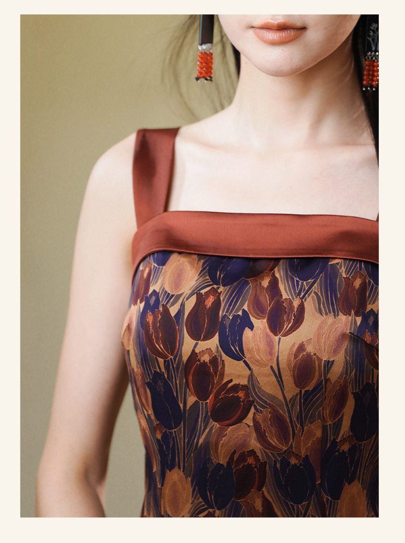 上海逸红颜梦璃2025年夏季新款22姆米红云纱真丝贵气修身吊带裙女