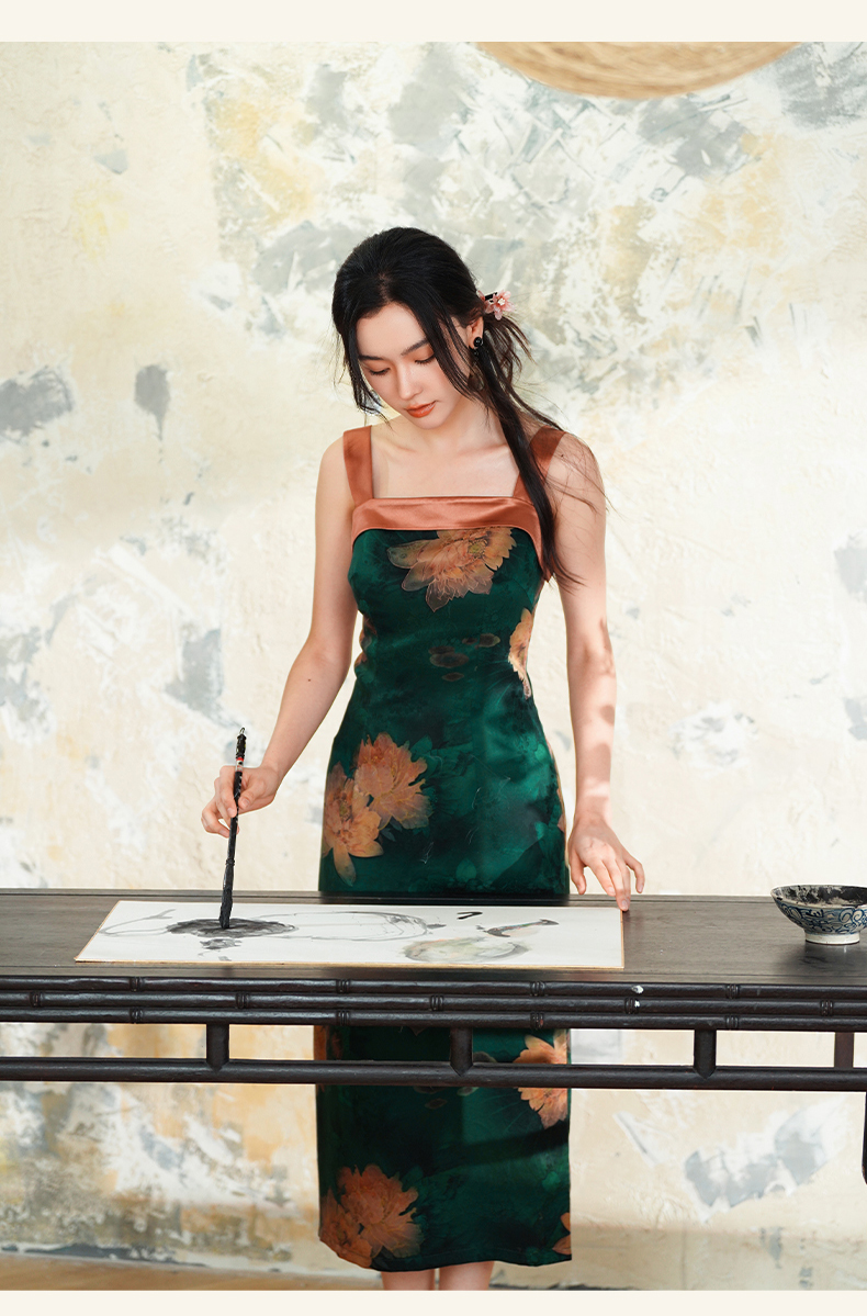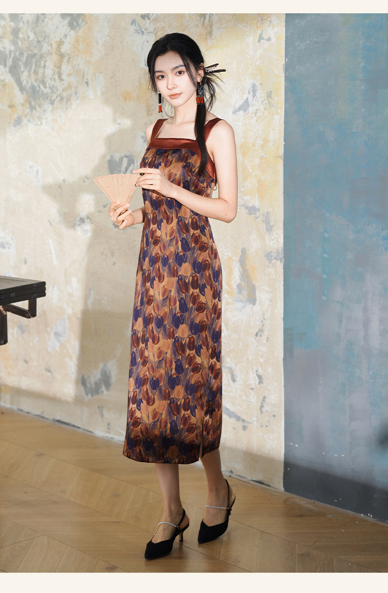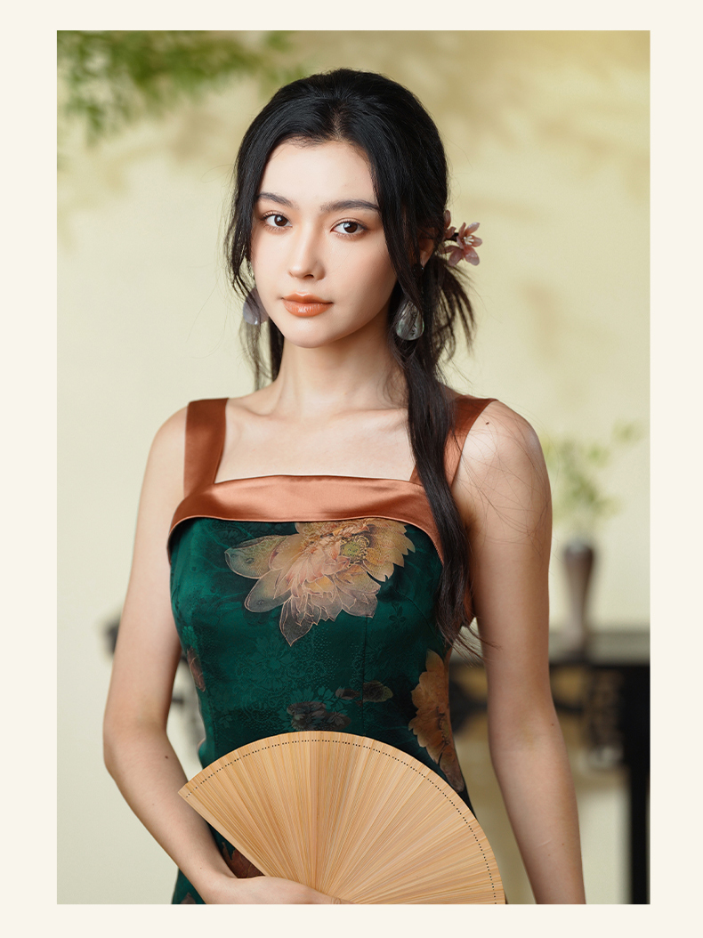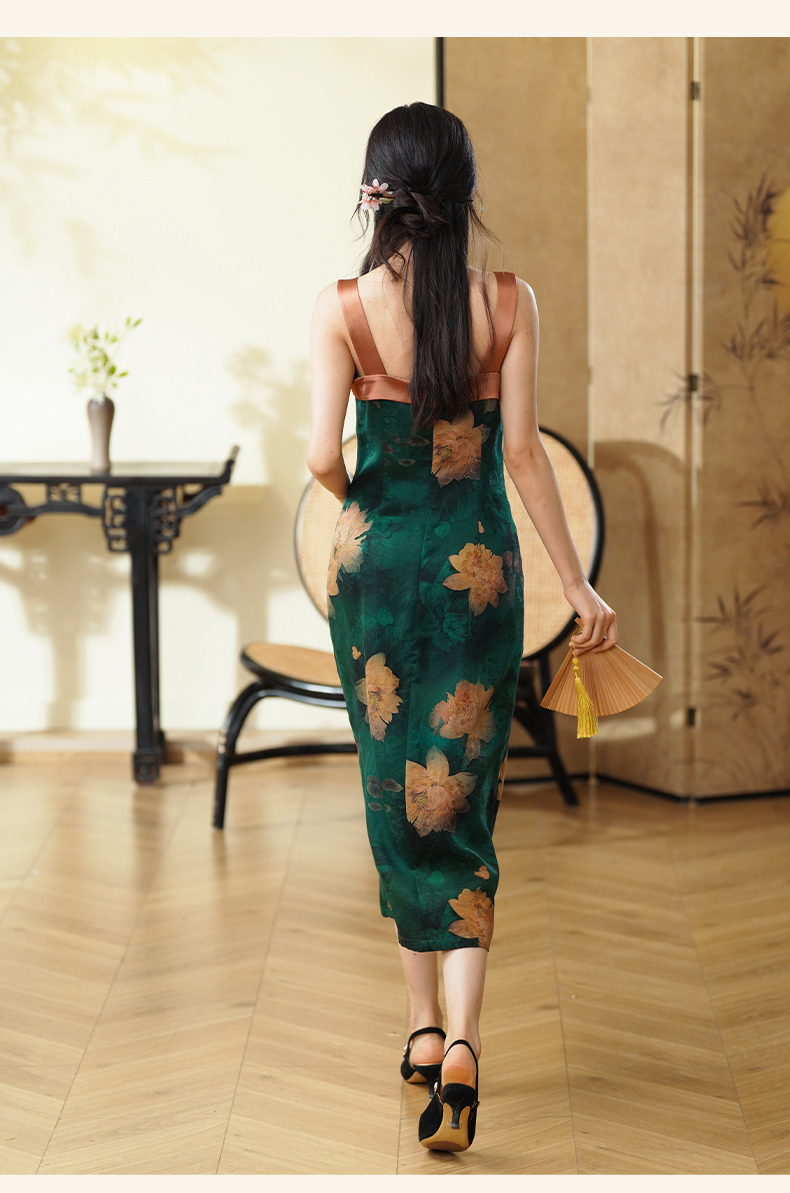 上海逸红颜梦璃2025年夏季新款22姆米红云纱真丝贵气修身吊带裙女