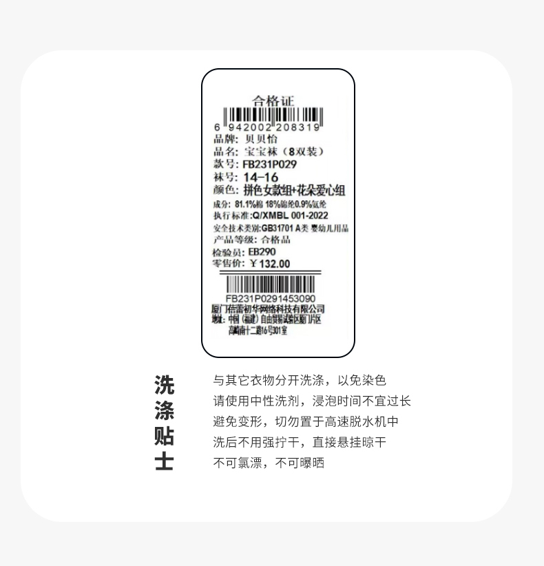 贝贝怡春季儿童宝宝袜(8双装)FB231P029