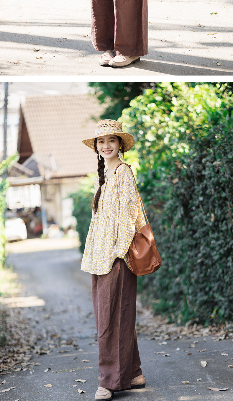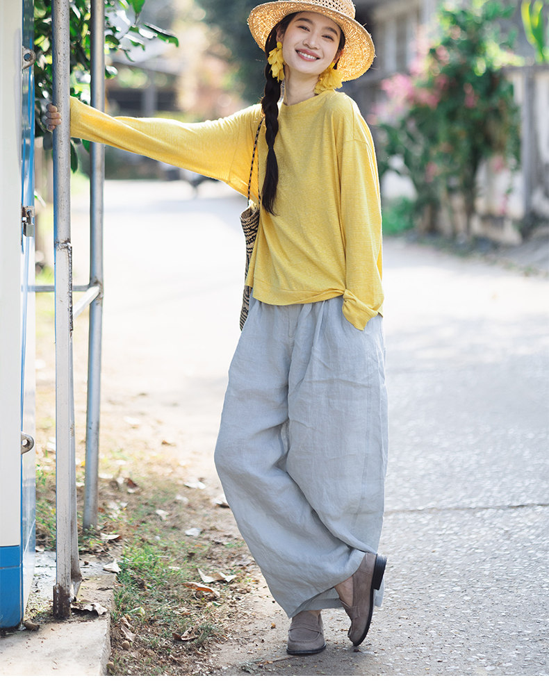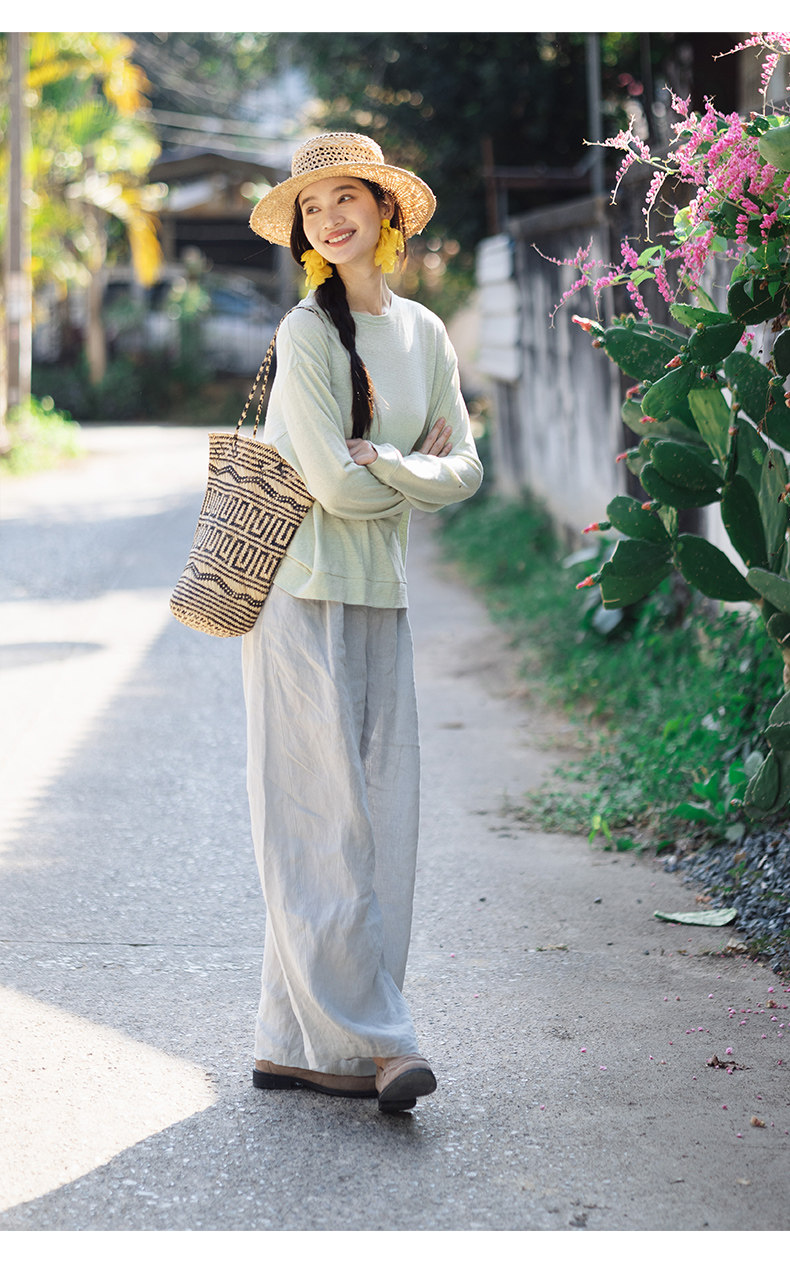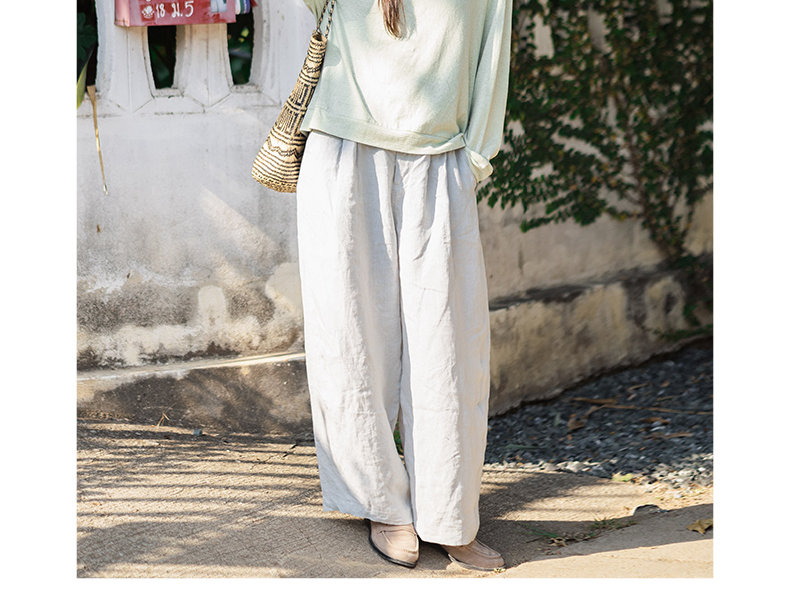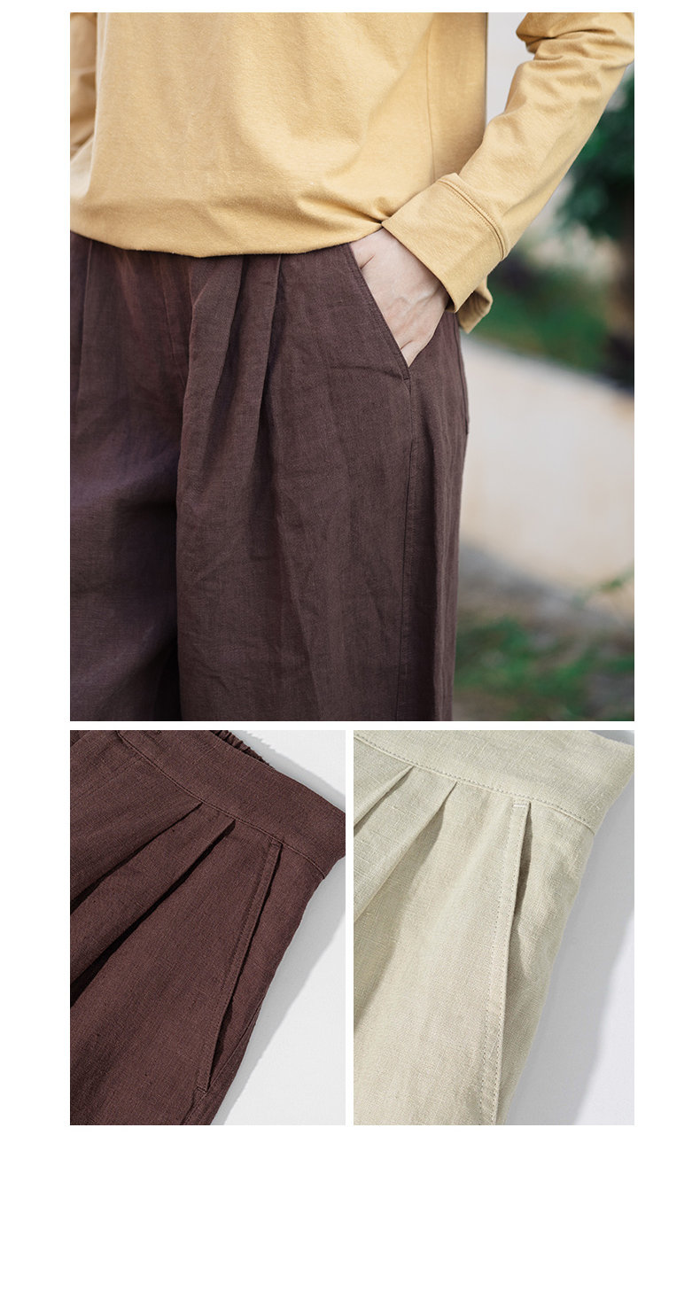 特绽放143朵/踏青裤·汉麻面料前腰捏褶休闲裤女宽松显瘦阔腿长裤