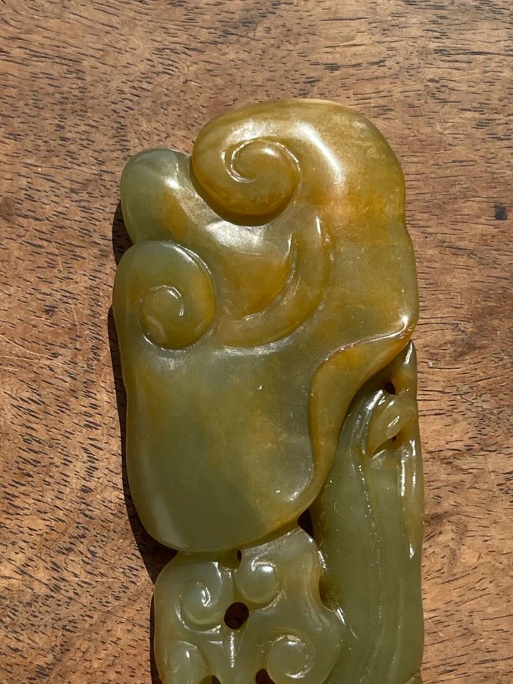 此和田青黄玉镂雕灵芝形如意摆件尺寸大,长逾二十厘米,重近百克,握于手中柔美厚实,令人爱不释手,摆放于案头或展示于柜中,尽显高雅气质。 此和田青黄镂雕灵芝形如意摆件,保存完好,表面包浆皮壳温润细腻,古韵盎然。