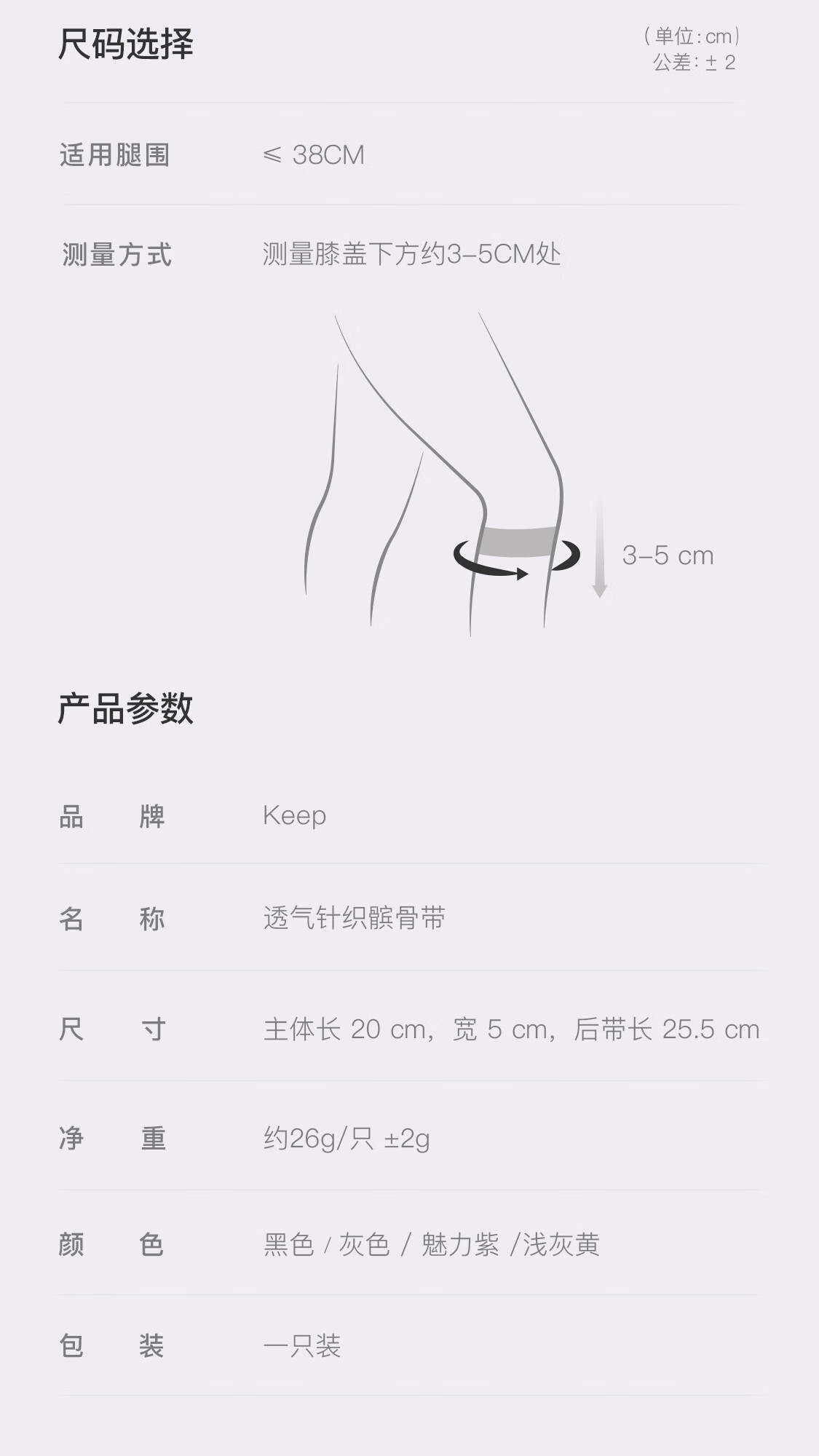 【积分兑换】Keep 透气针织髌骨带-单向加压[两只装]黑色