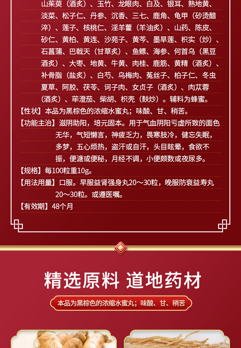 同仁堂防衰益寿丸3g*10丸 滋阴助阳气血阴阳亏虚月经不调失眠多梦