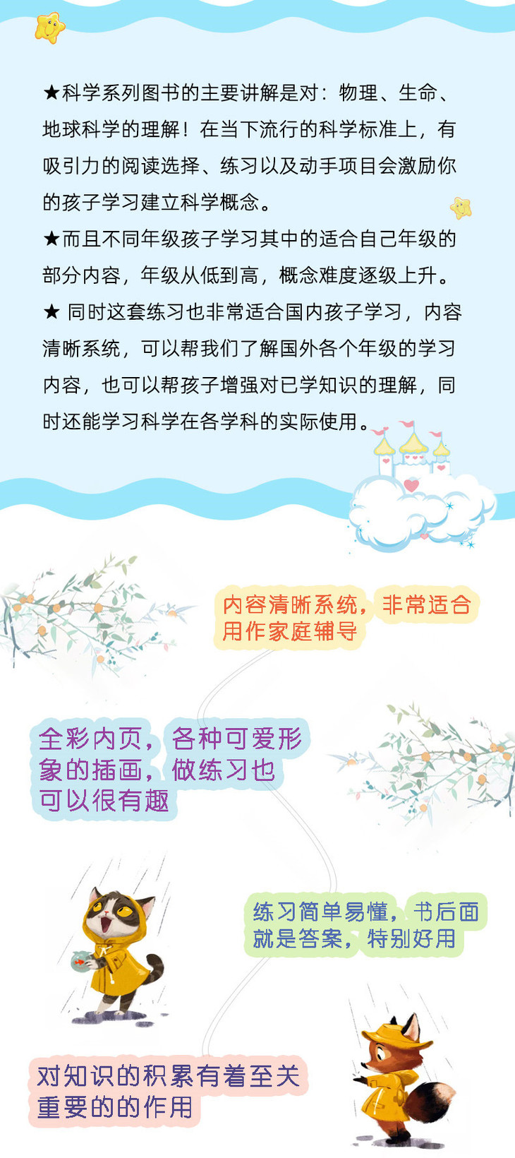 同时这套练习也非常适合国内孩子学习,内容清晰系统,可以帮我们了解国外各个年级的学习内容,也可以帮孩子增强对已学知识的理解,同时还能学习科学在各学科的实际使用。
