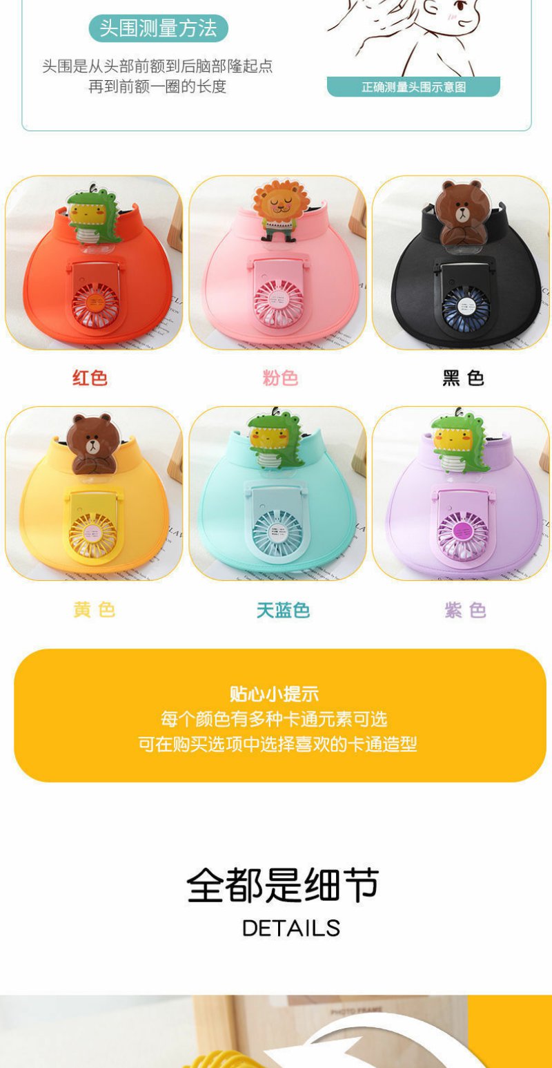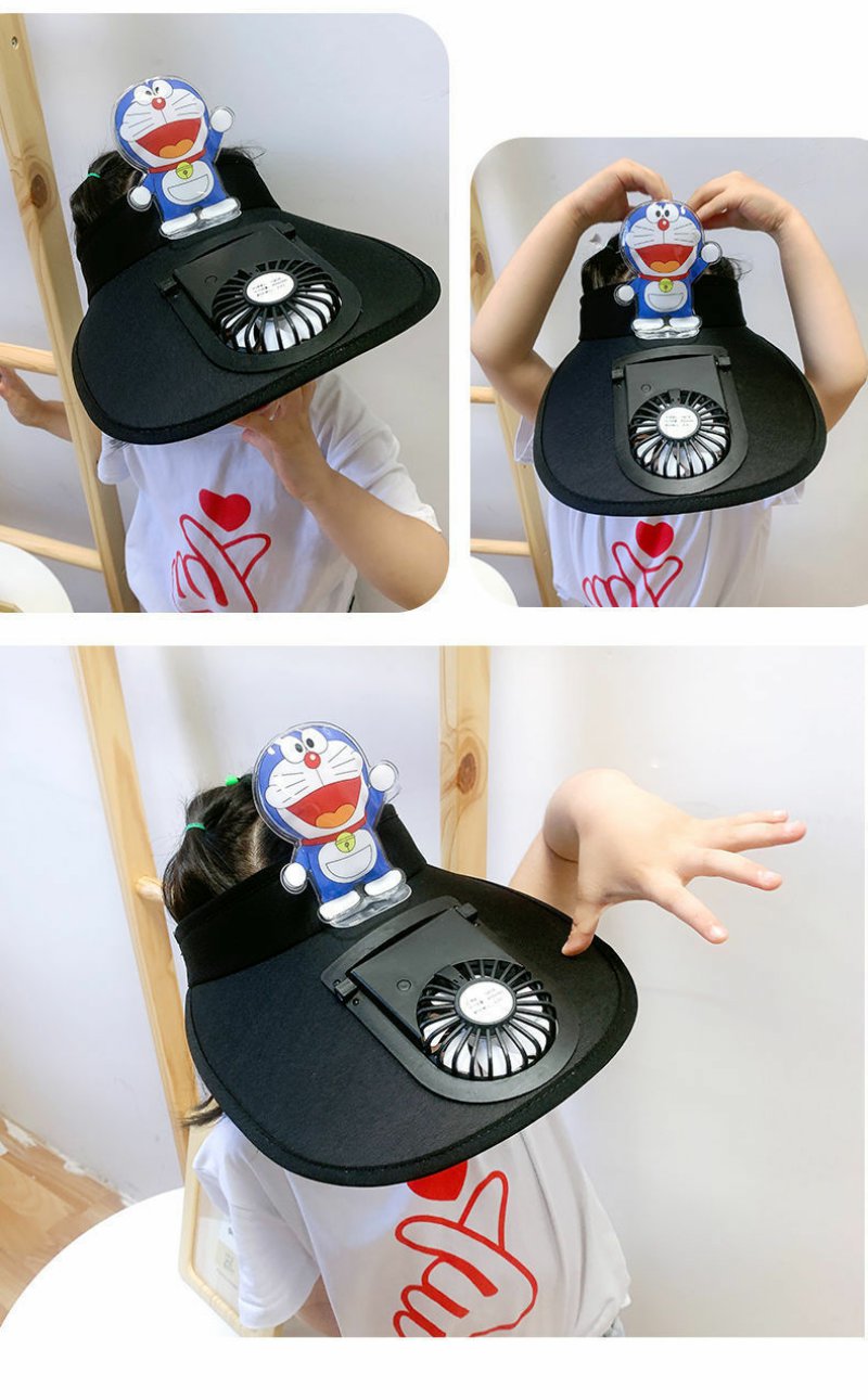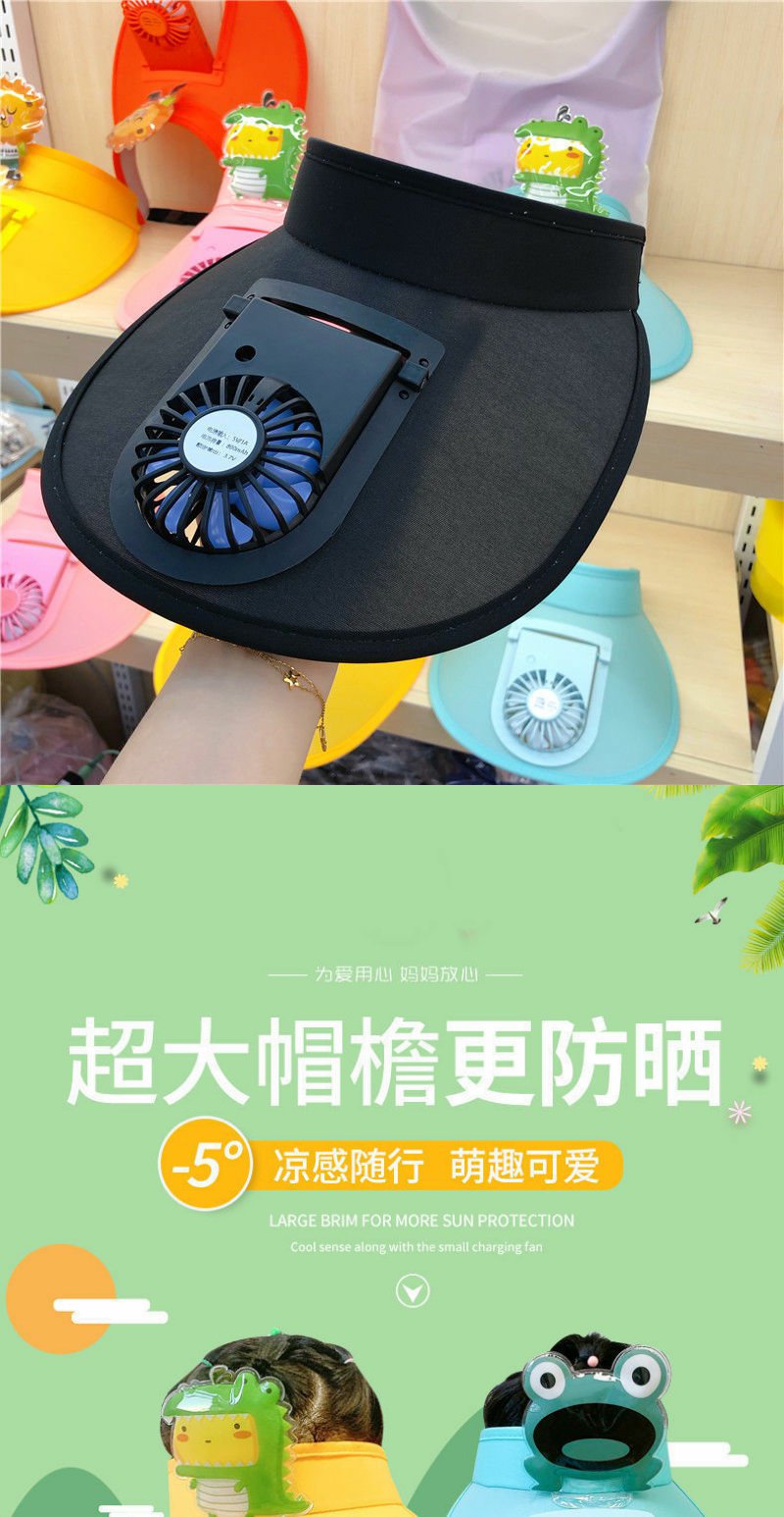 儿童帽子夏季遮阳防晒空顶帽防紫外线卡通太阳帽电风扇吹风亲子帽