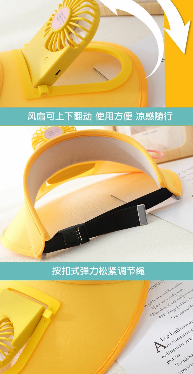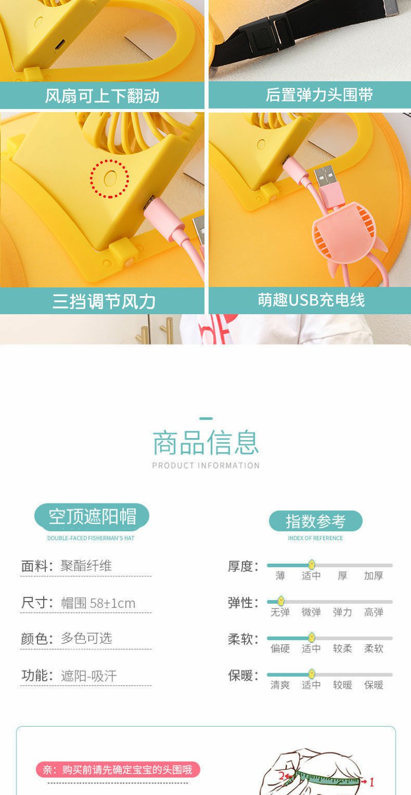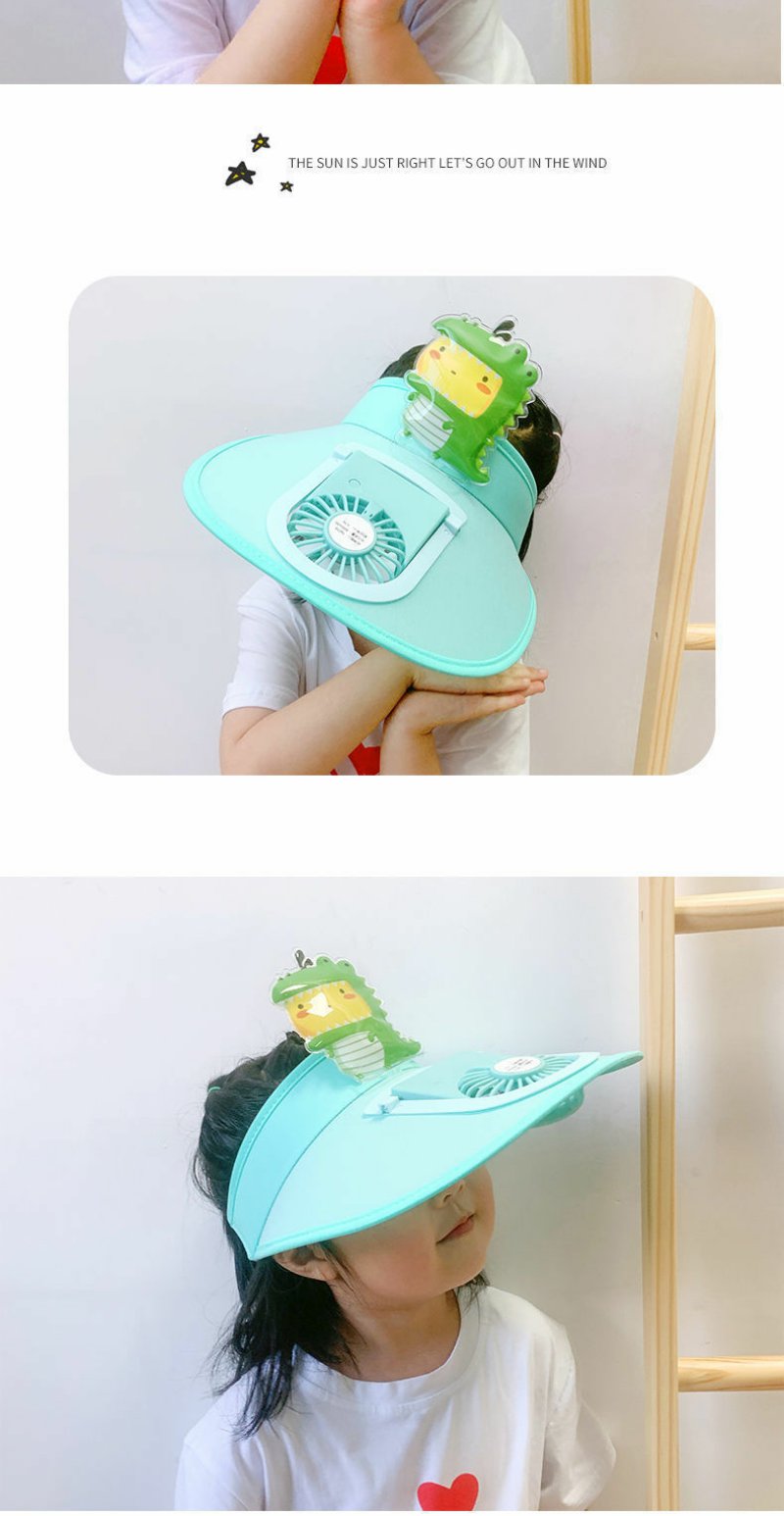 儿童帽子夏季遮阳防晒空顶帽防紫外线卡通太阳帽电风扇吹风亲子帽