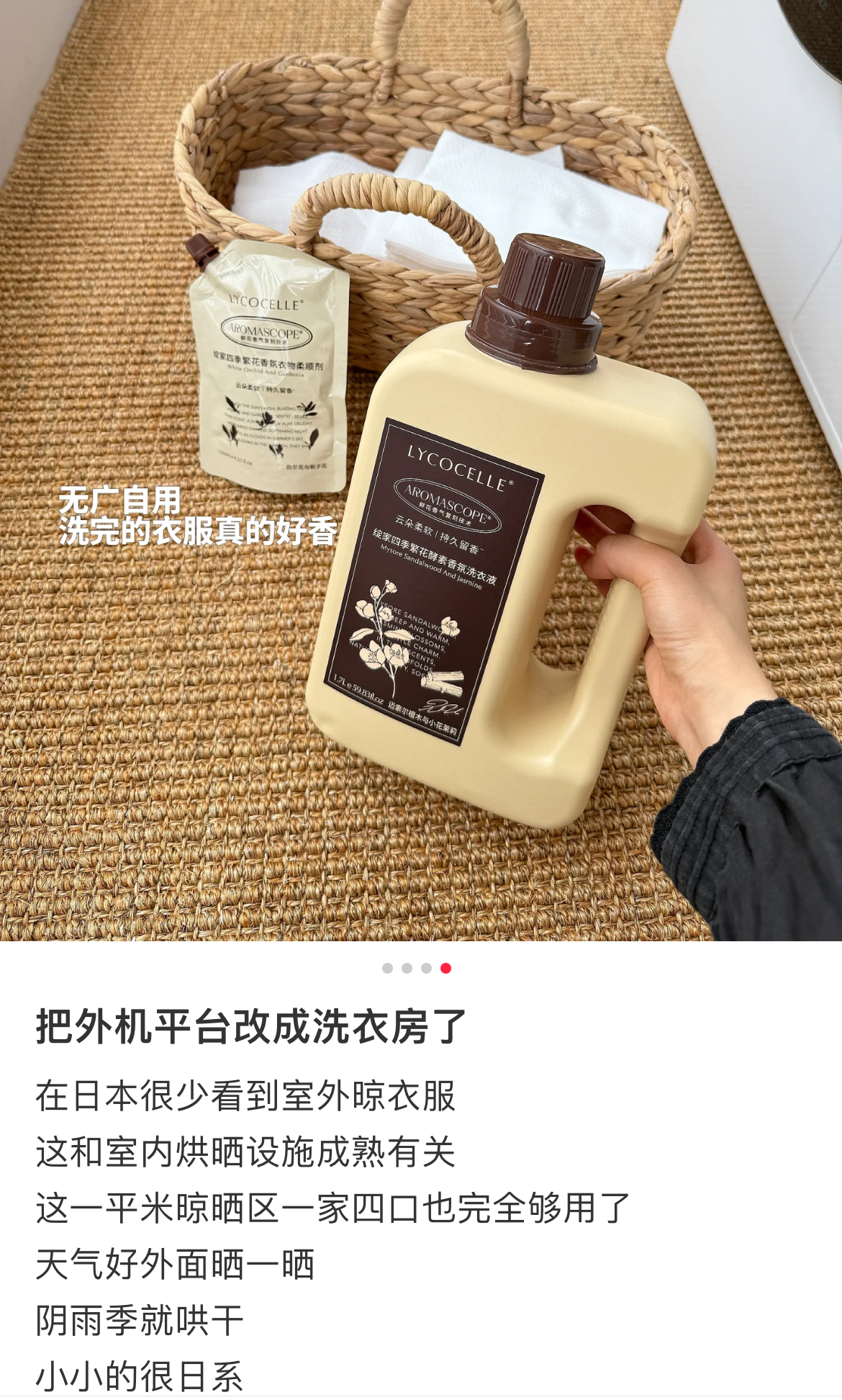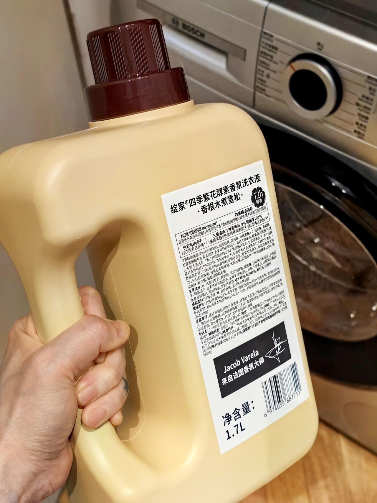 绽家的家清用品,我真是每出一款都要试下,好用就上,太喜欢了!除菌液、内衣洗衣液和洗碗液,超推荐。真丝洗衣液、局部污渍处理液和地板清洁剂,也超好用的!这次再来个便宜大碗的,如果没有特别材质的衣服,就是普通的T恤衬衫家居运动服,就用它,四季繁花香氛洗衣液,香味多,还超大瓶,划算!