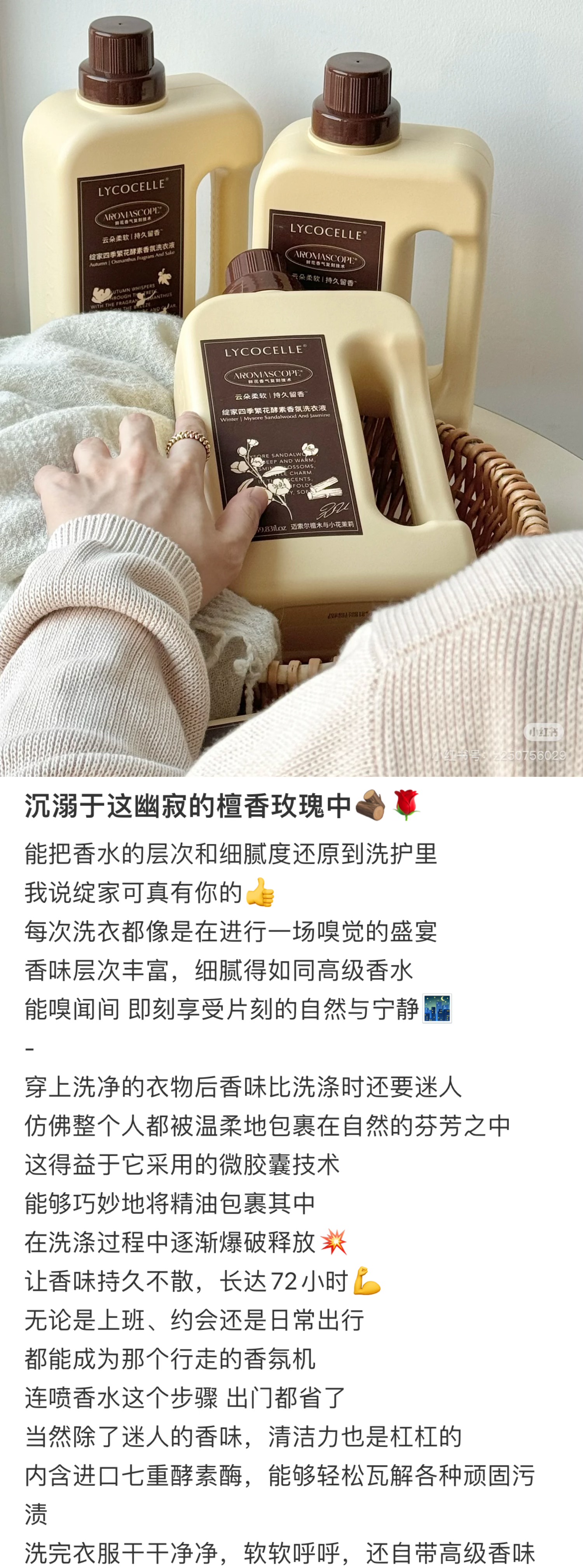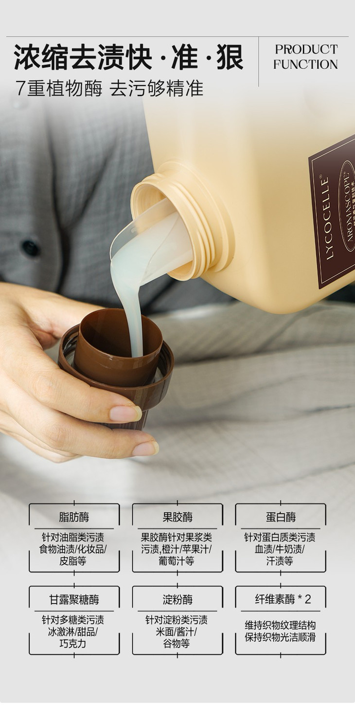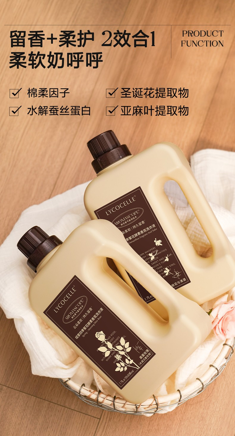 除了迷人的香气,清洁与护衣能力同样出色。蕴含七重植物酵素,能针对油脂类、果胶类、蛋白质类、多糖类等不同类型的污渍,精准去污,让衣物焕然一新。特别添加的棉柔因子、水解蚕丝蛋白、圣诞花提取物和亚麻叶提取物,实现留香与柔护二合一,温柔呵护每一件衣物,保持柔软触感。