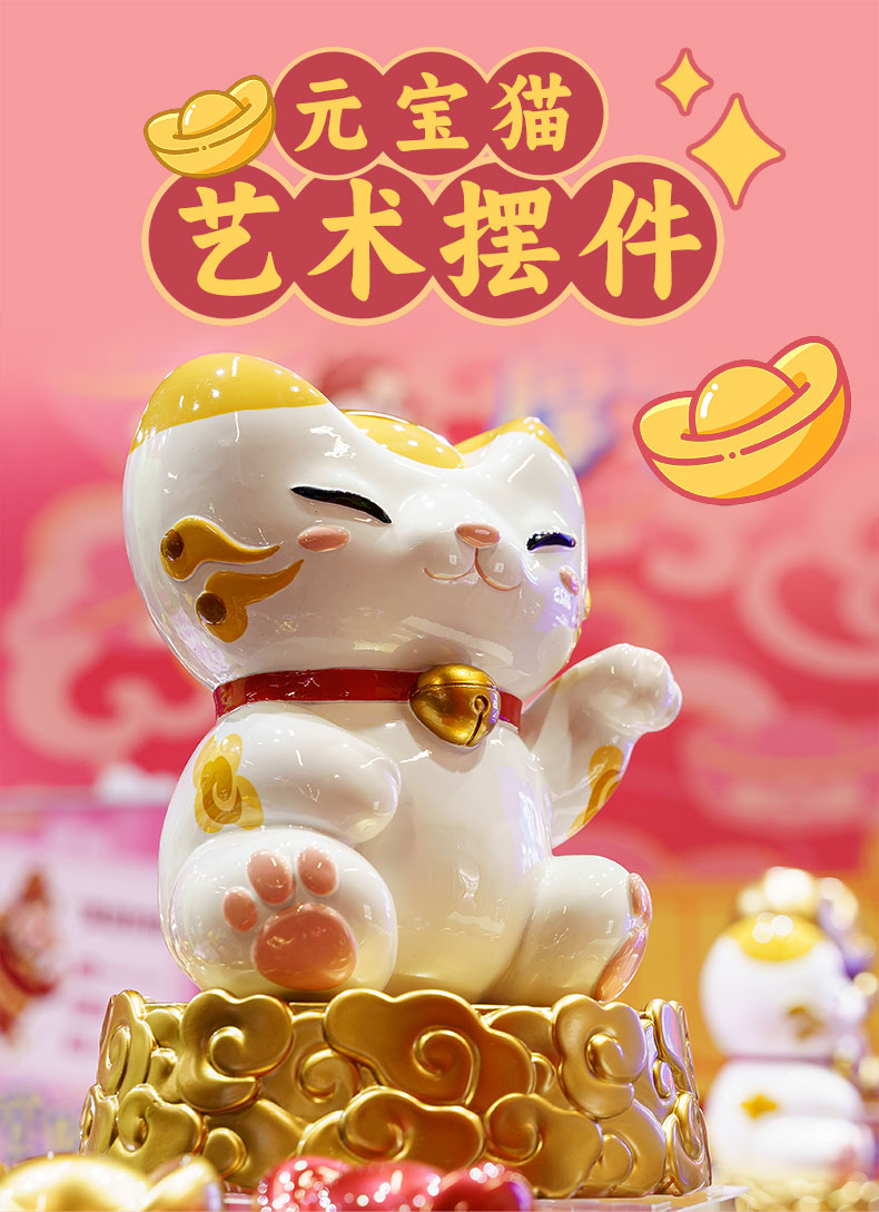 2026新春「元宝猫艺术摆件」礼盒|买即赠礼袋,收藏款赠新春防滑垫,3款7色可选,组合装更优惠