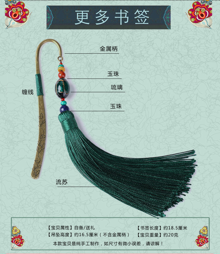 古风古典金属书签中国风精美流苏精致绿仿琉璃饰品文具