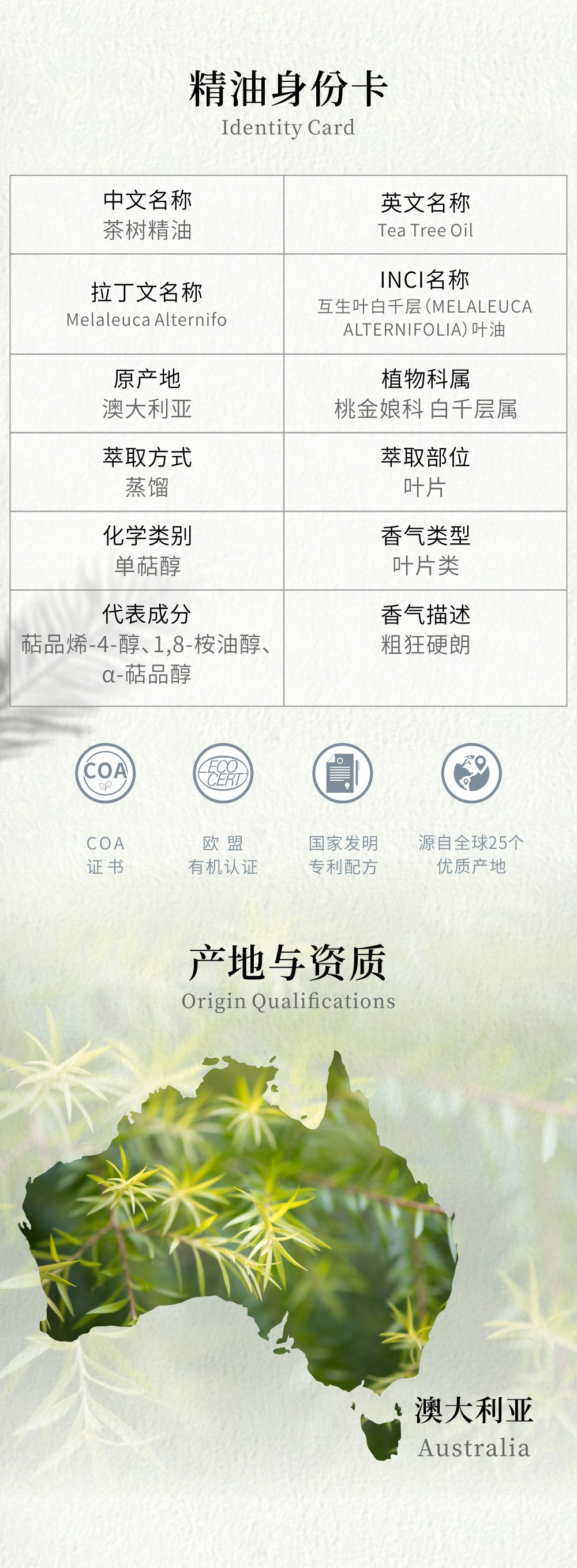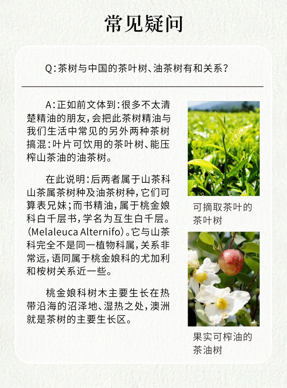 特别说明:此茶树与我们中国人所指的茶叶树或油茶果树并无关系;它原生于澳大利亚,在中国并不生长。