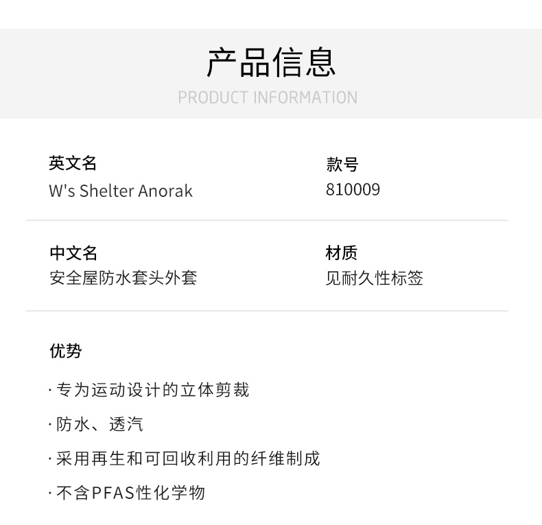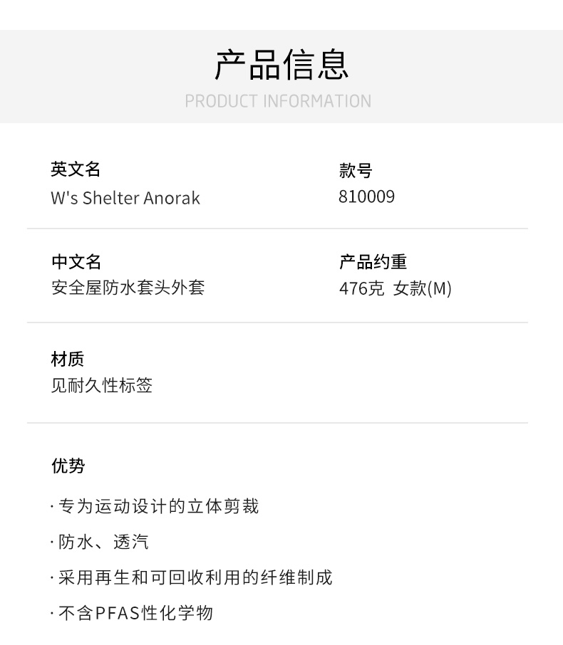 HOUDINI胡丁尼 ShelterAnorak安全屋女款冬季单双板专业滑雪服外套 810009