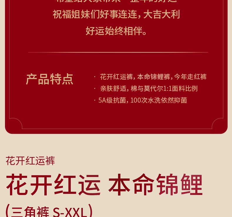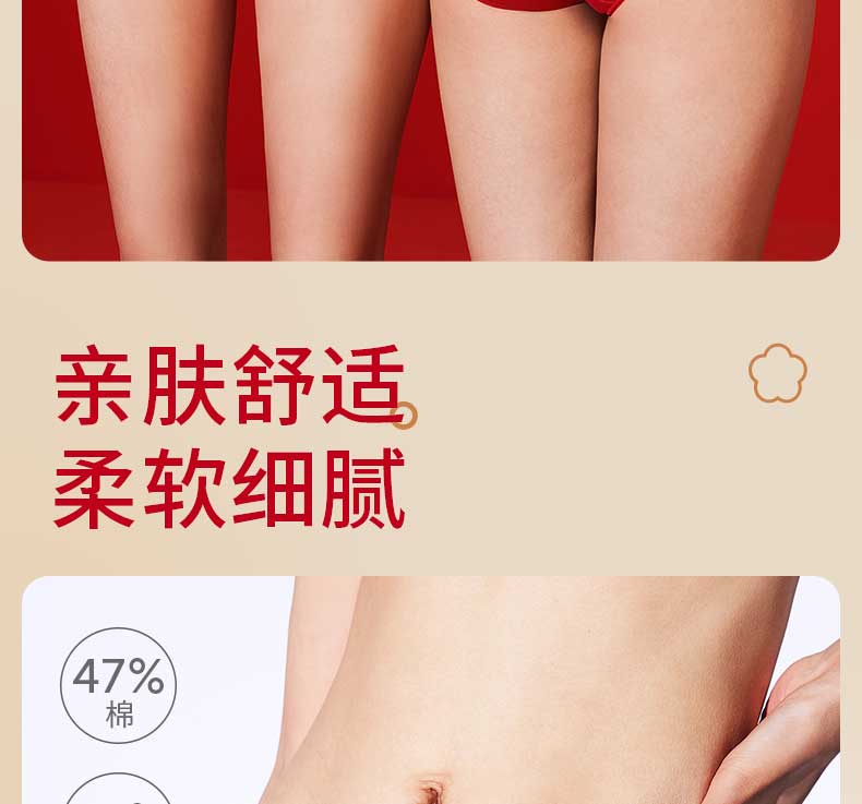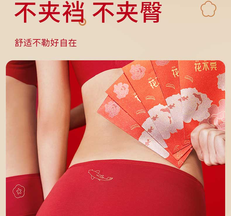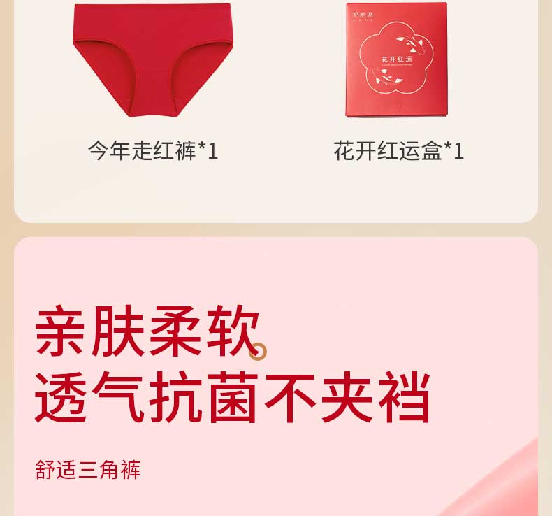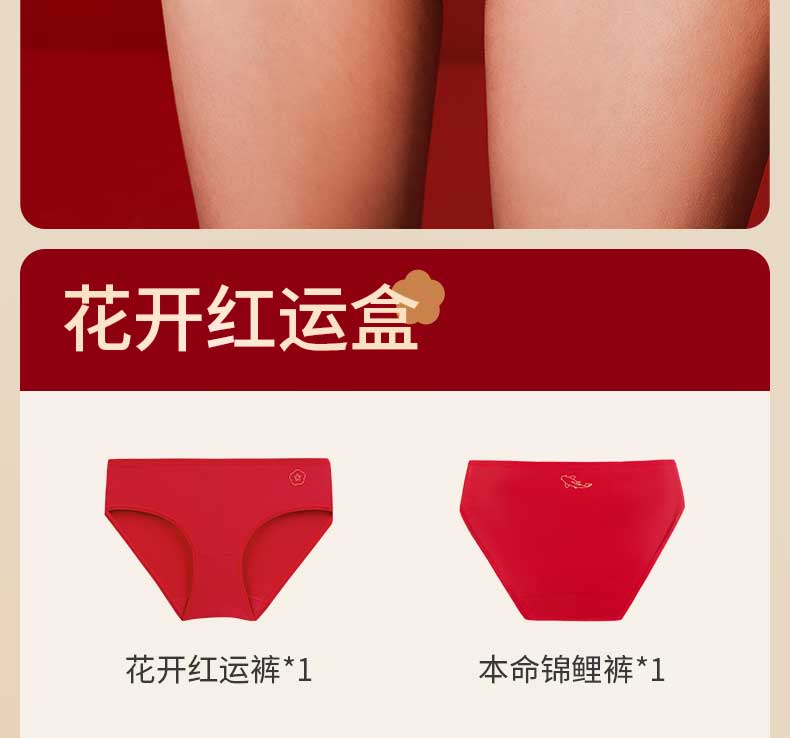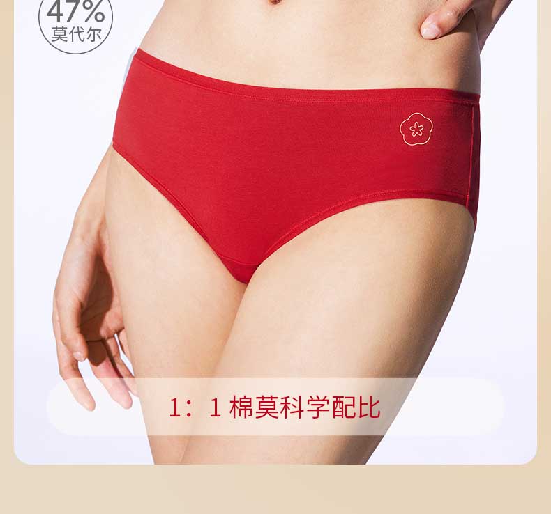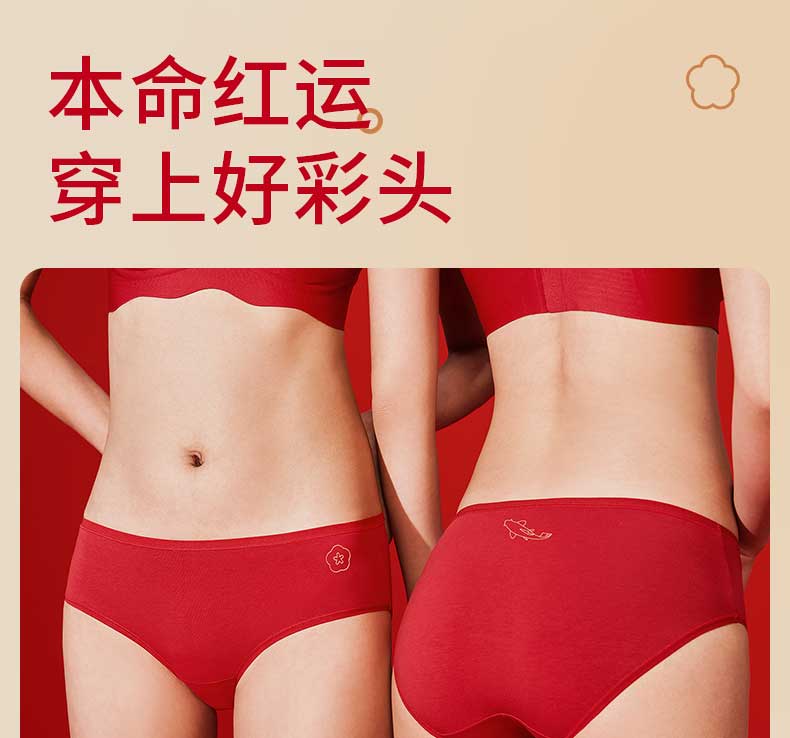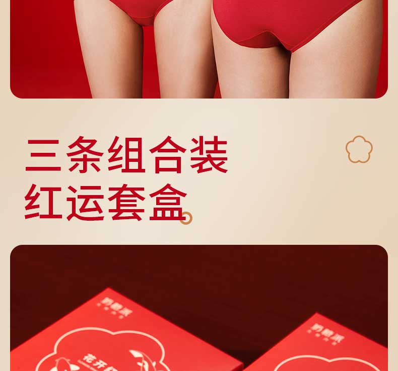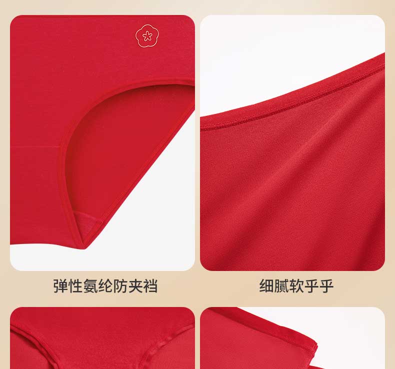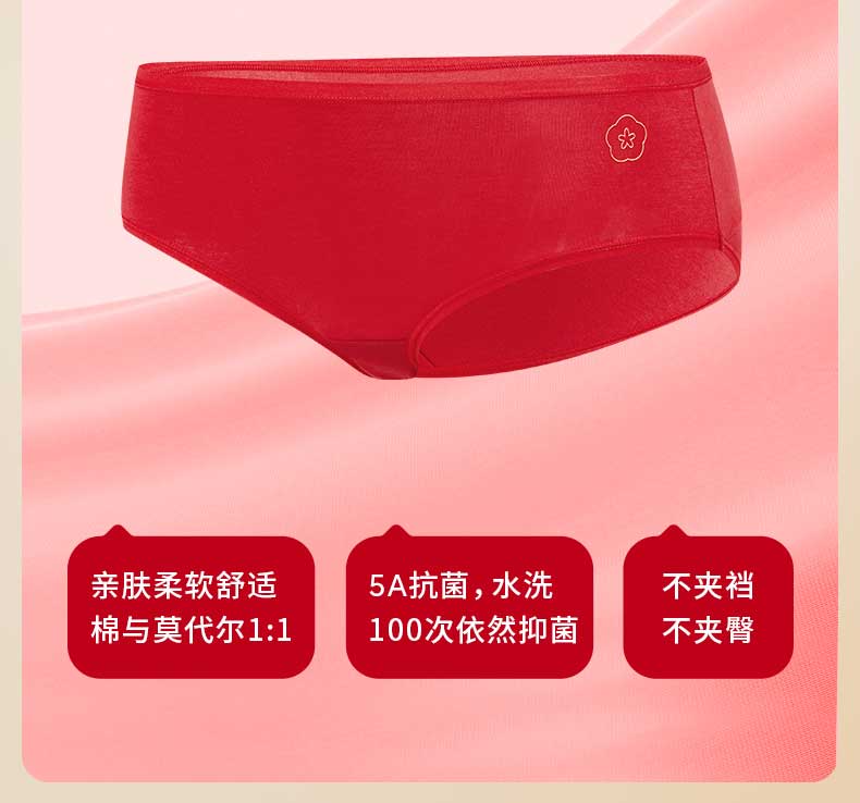 奶糖派红色内裤女棉莫抑菌三角裤本命年结婚女生短裤3条礼盒装