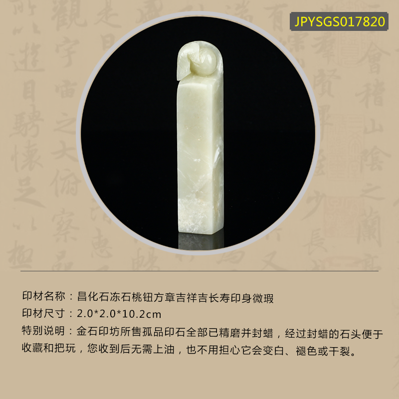 孤品17820昌化石冻石桃钮方章吉祥吉长寿2.0*2.0*10.2cm