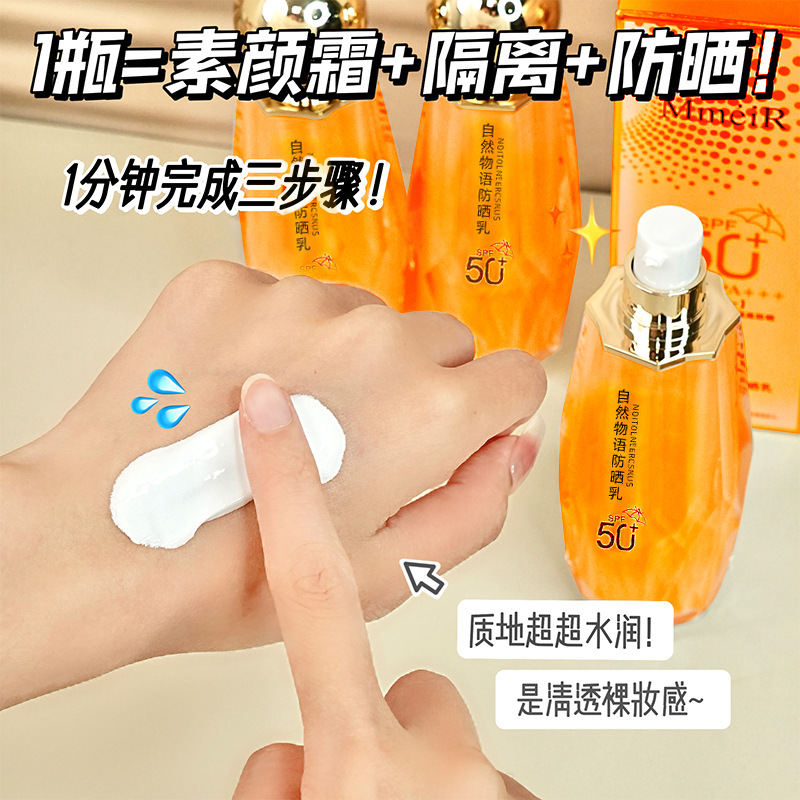 【39.9抢2瓶❗️SPF50+物语透润隔离防晒乳】三效合一的防晒乳,质地水润丝滑,不卡粉不伤肤,小金人防晒霜防水防汗不油腻正品QQ