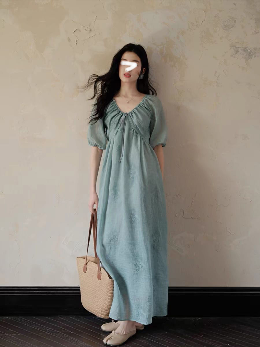 裁缝学苑AQ519法式V领连衣裙纸样女装短袖插肩裙子服装打板图纸