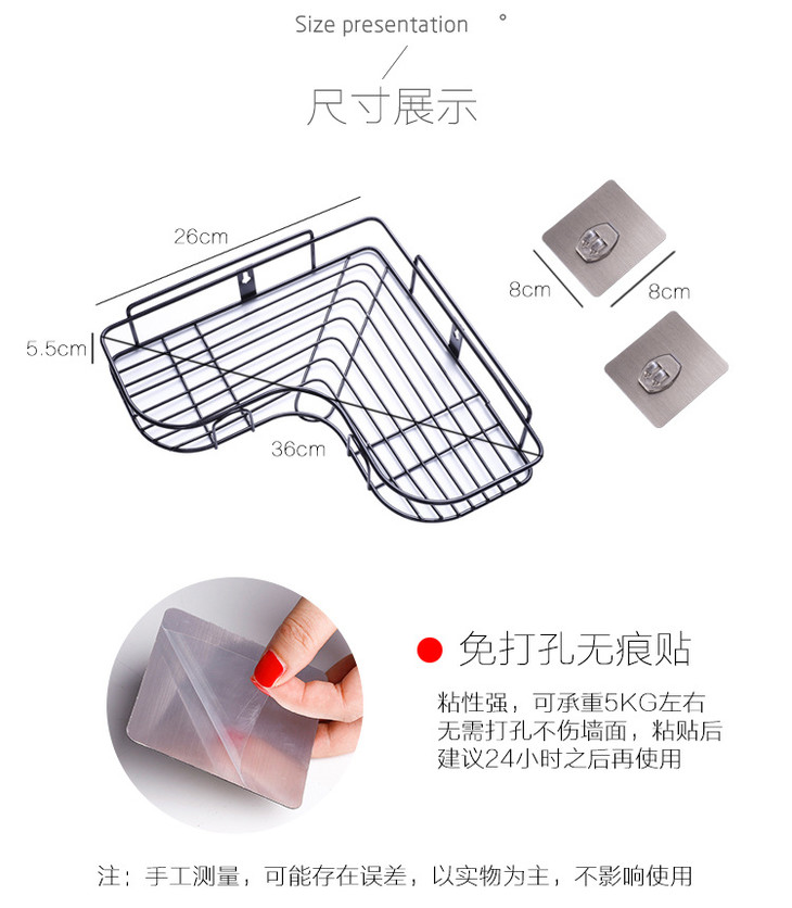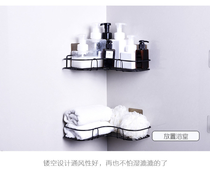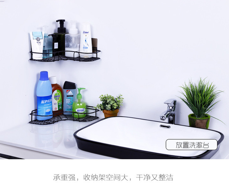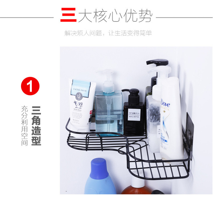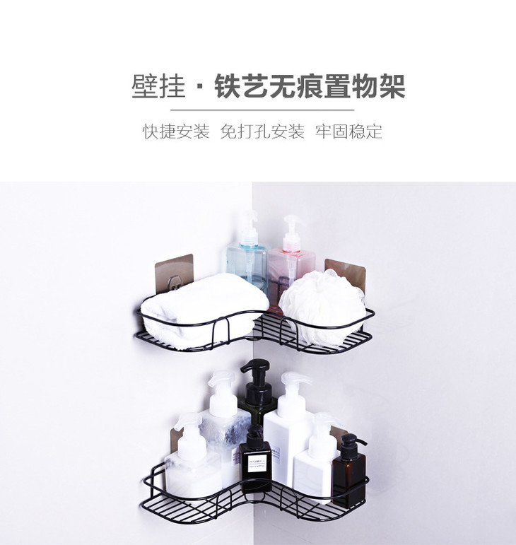 【置物架】浴室置物架免打孔洗手间卫生间厕所卫浴三角收纳洗漱台吸壁式壁挂