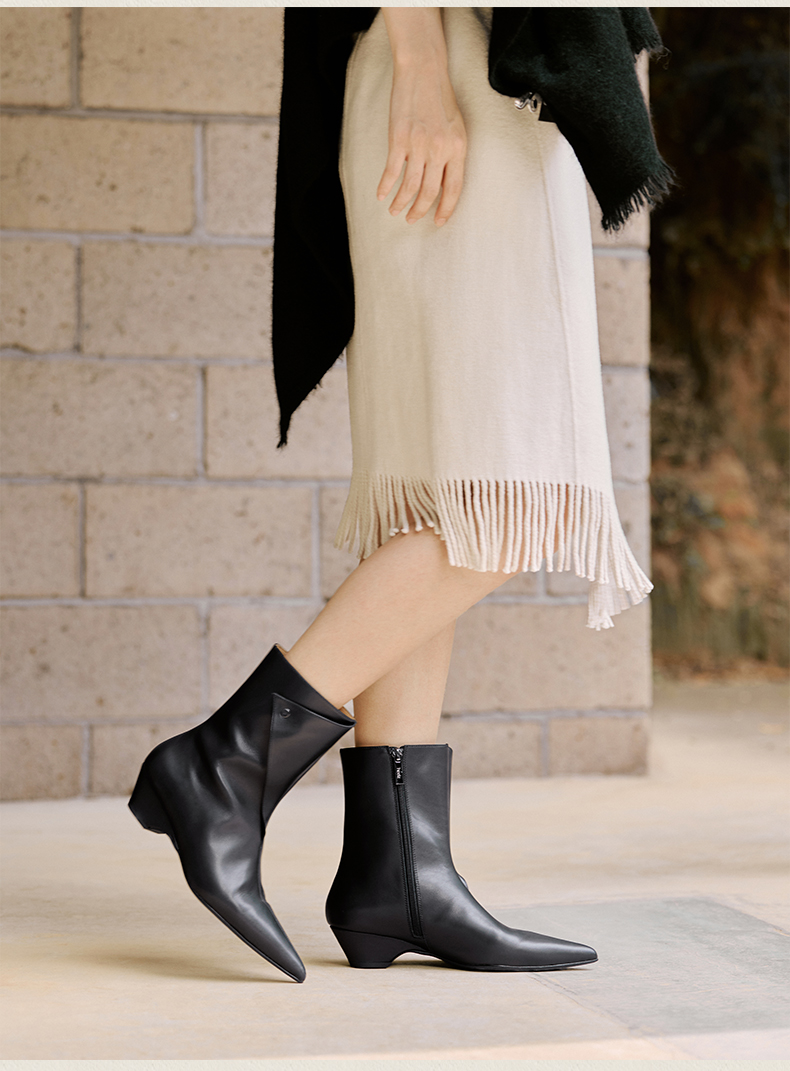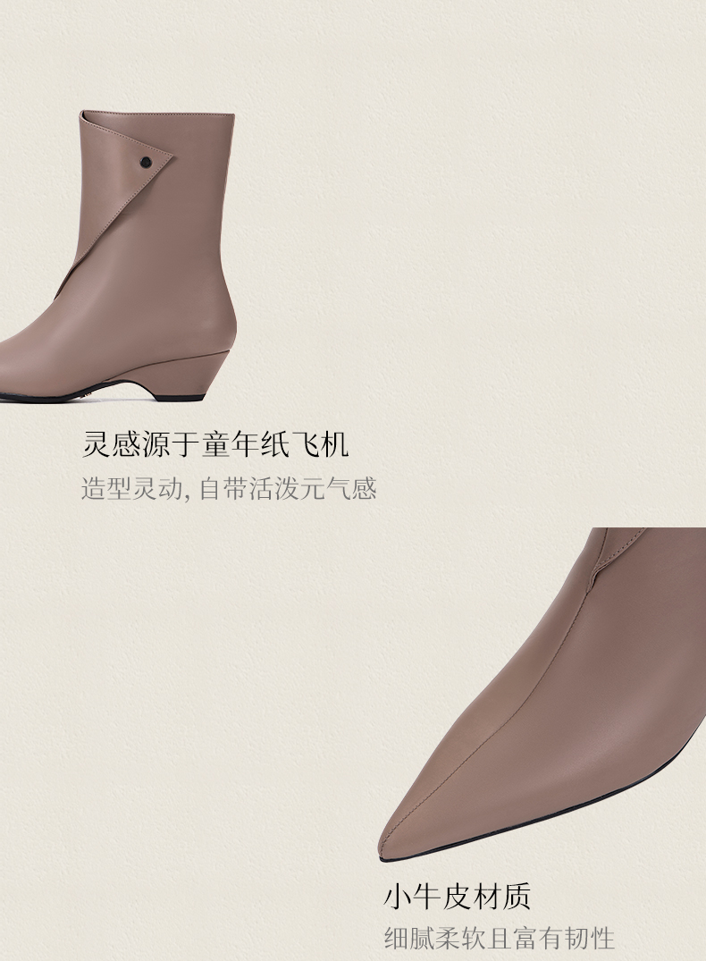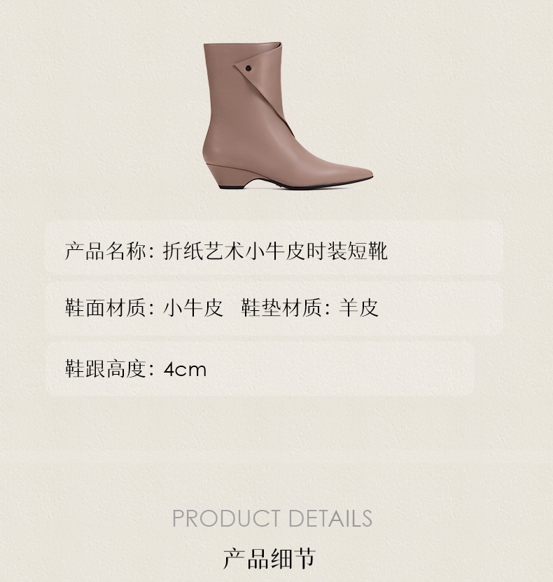 heelz设计师手工鞋履 |折纸艺术小牛皮 时装短靴 4 公分