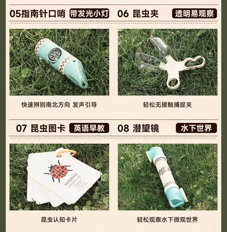 4楼Eubelle欧蓓 Mobee儿童户外探险套装 昆虫观察盒罐 捕捉器抓萤火虫探索玩具礼物 3岁以上 活动价:299元
