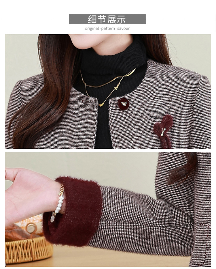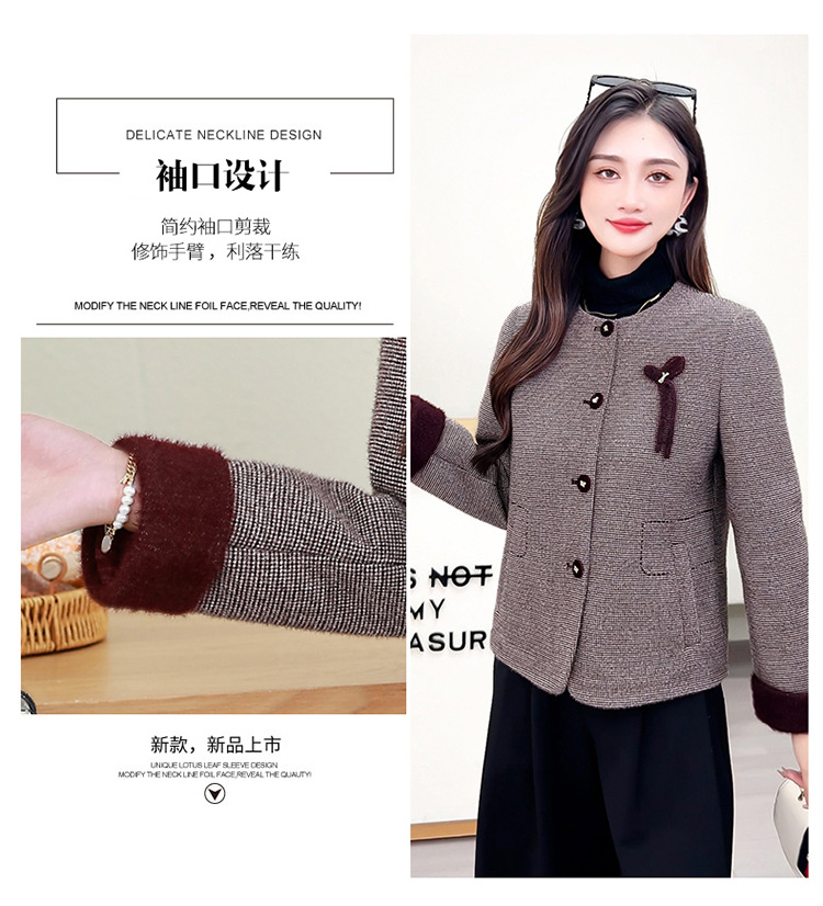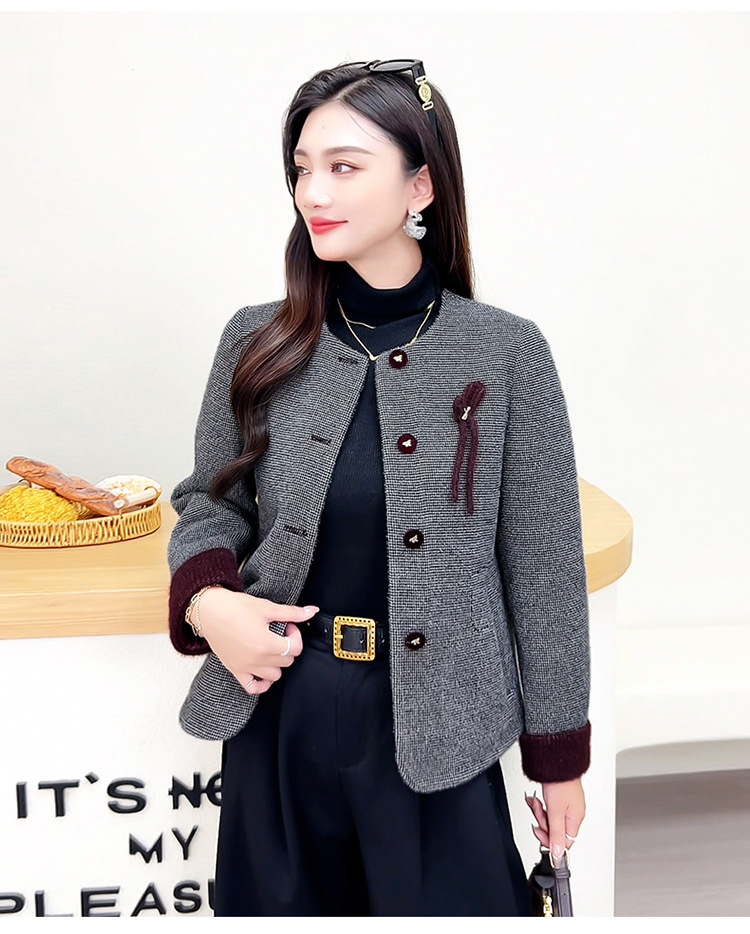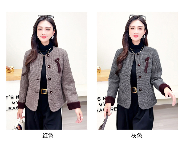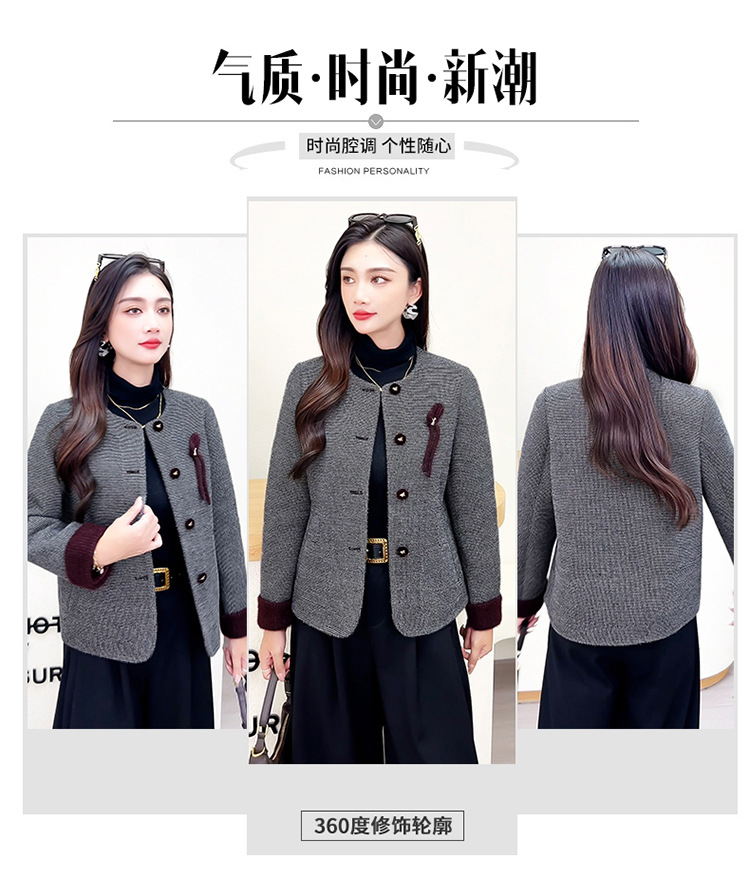 QYM AM5C063-Y圆领小香风外套气质优雅宽松休闲厚款单排扣上衣 商品图4