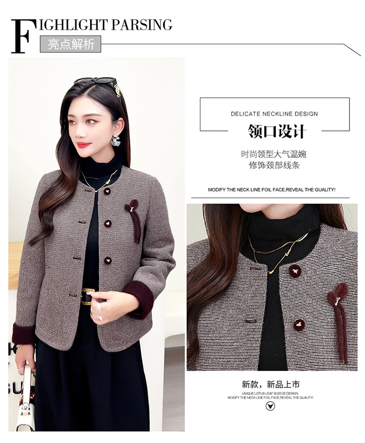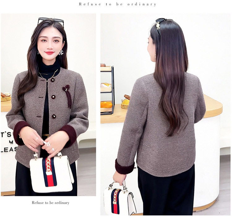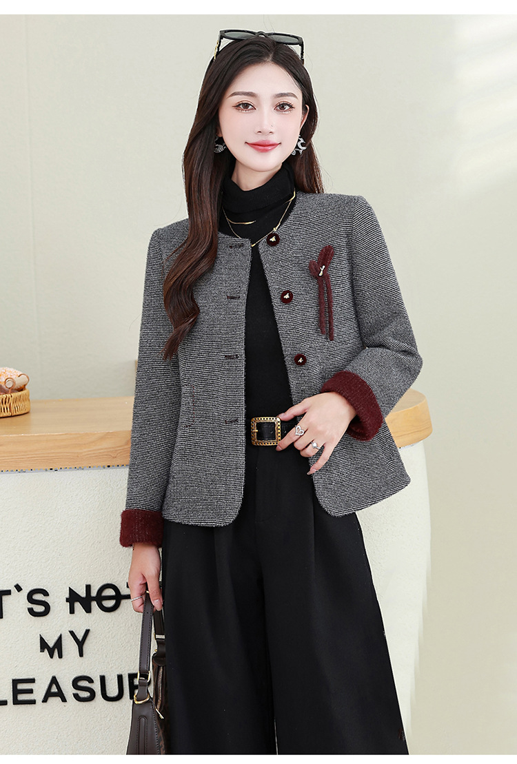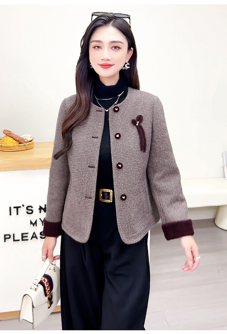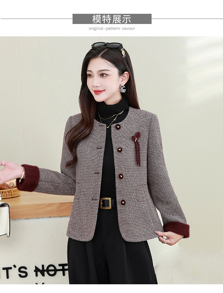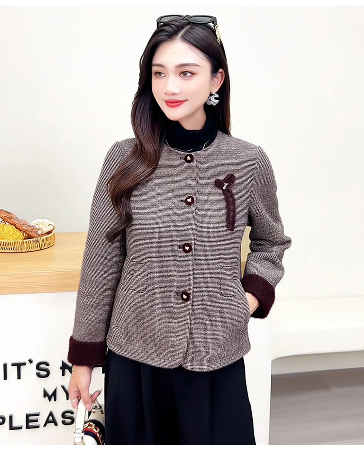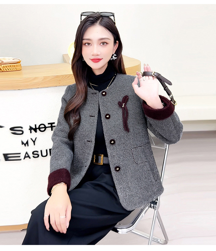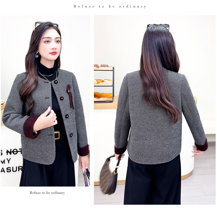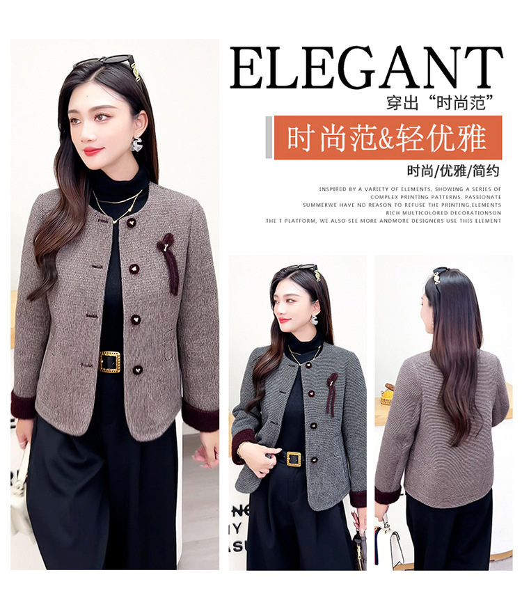QYM AM5C063-Y圆领小香风外套气质优雅宽松休闲厚款单排扣上衣 商品图0