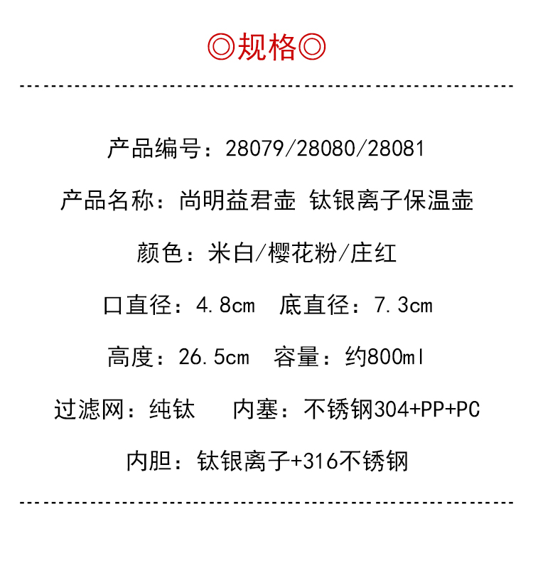 茶香记 尚明益君壶钛银离子保温壶800ml钛银离子茶壶出行易携带