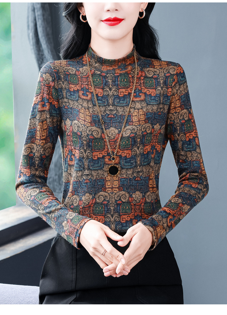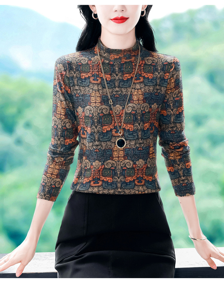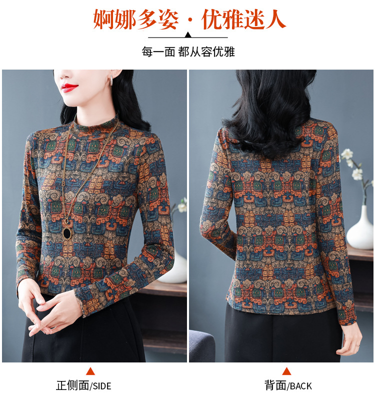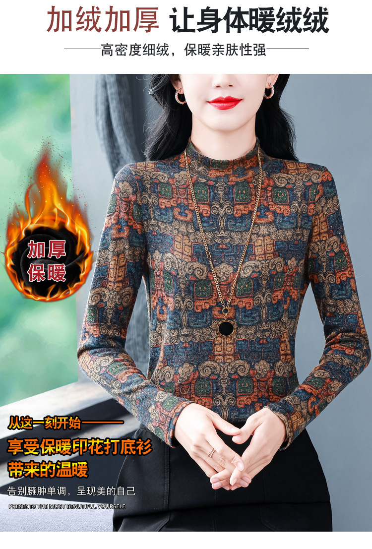 KQL 644G9271印花T恤加绒加厚上衣洋气小衫