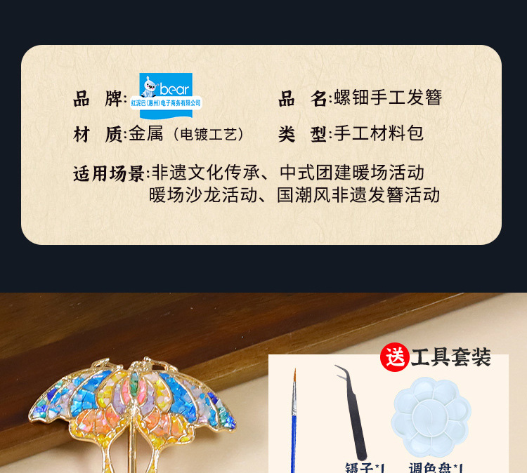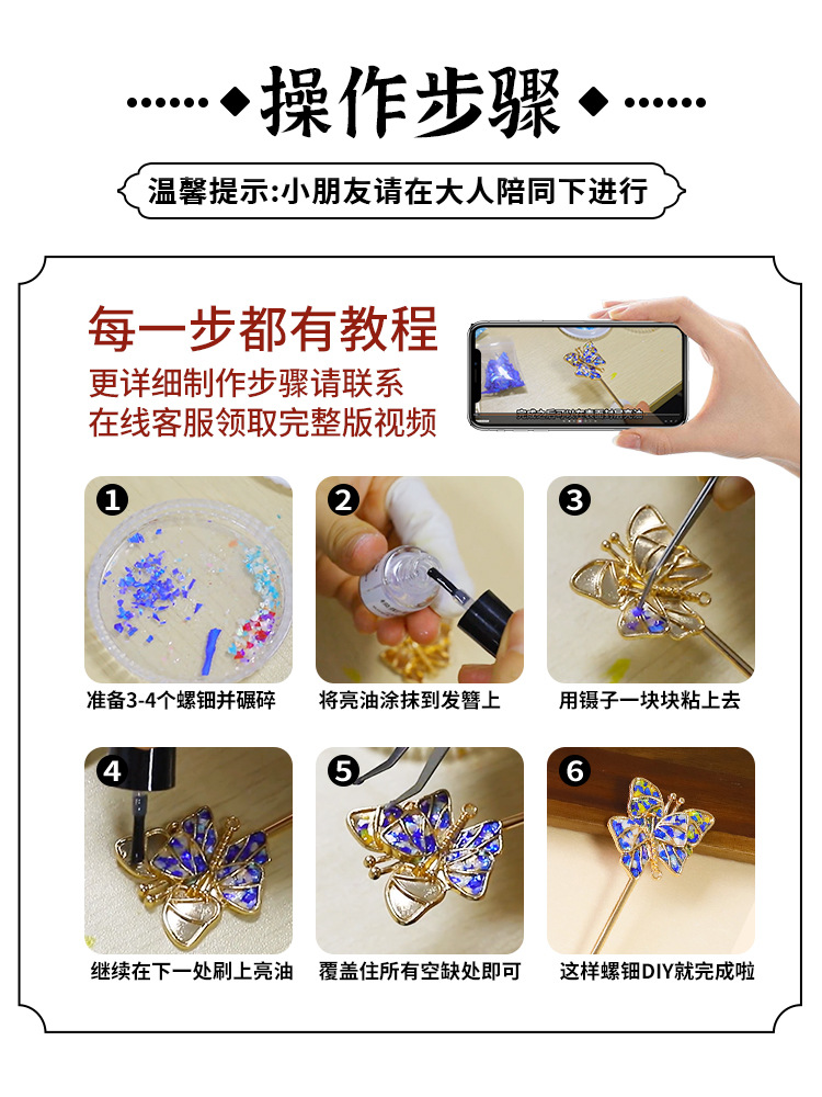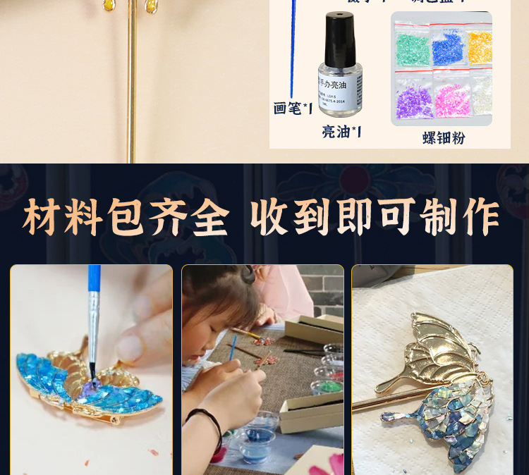 【国风非遗手工】仿螺钿手链胸针DIY材料包发夹发簪成人儿童手工暖场活动