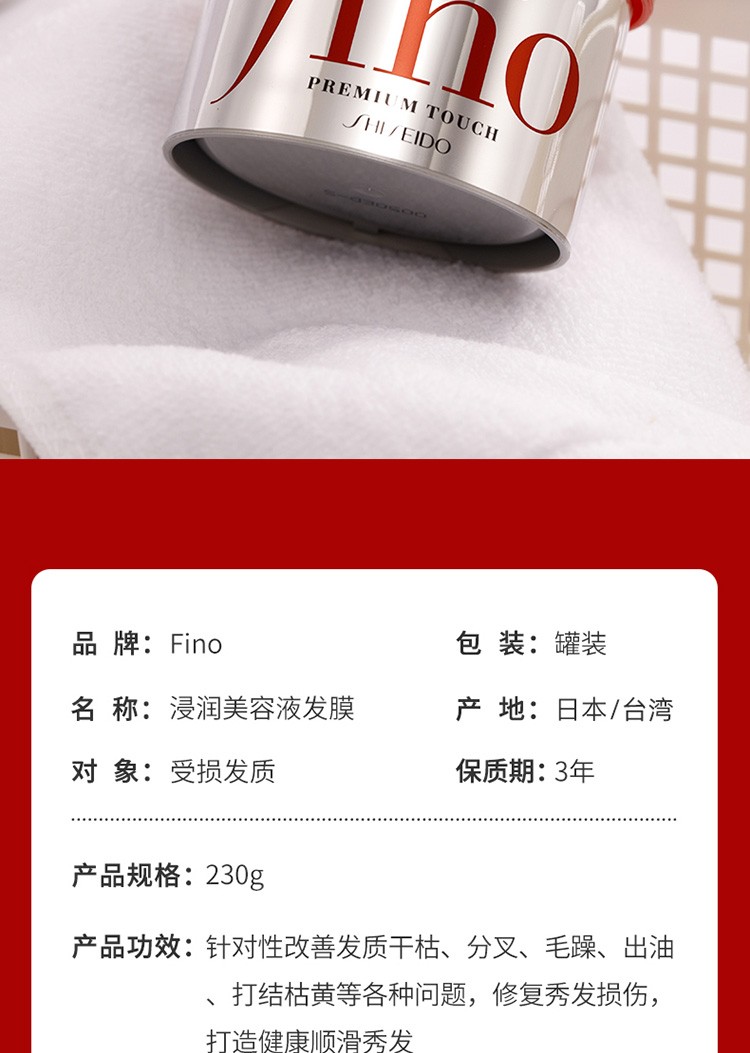 【保税仓直发】资生堂Fino洗发水550ml/护发素550ml/发膜230g